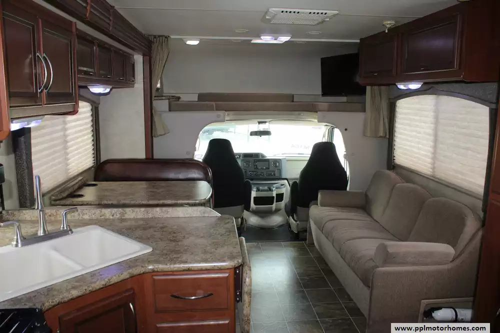 Experience the perfect balance of power and comfort with this 2013 Chateau 31F, a 32-foot motorhome built on the legendary Ford E-450 chassis. Powered by a robust 6.8L V10 engine, this Class C is celebrated for its smooth handling and the reliability needed to tackle mountain passes and long highway stretches with confidence. Its sleek fiberglass exterior and durable rubber roof house a spacious interior enhanced by two slide-outs, providing a roomy, residential feel that has made the Chateau 31F a favorite for families and long-distance travelers alike.