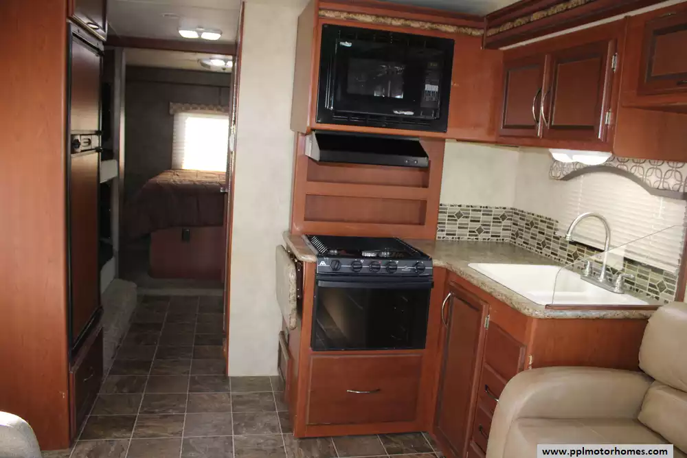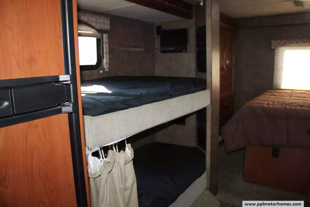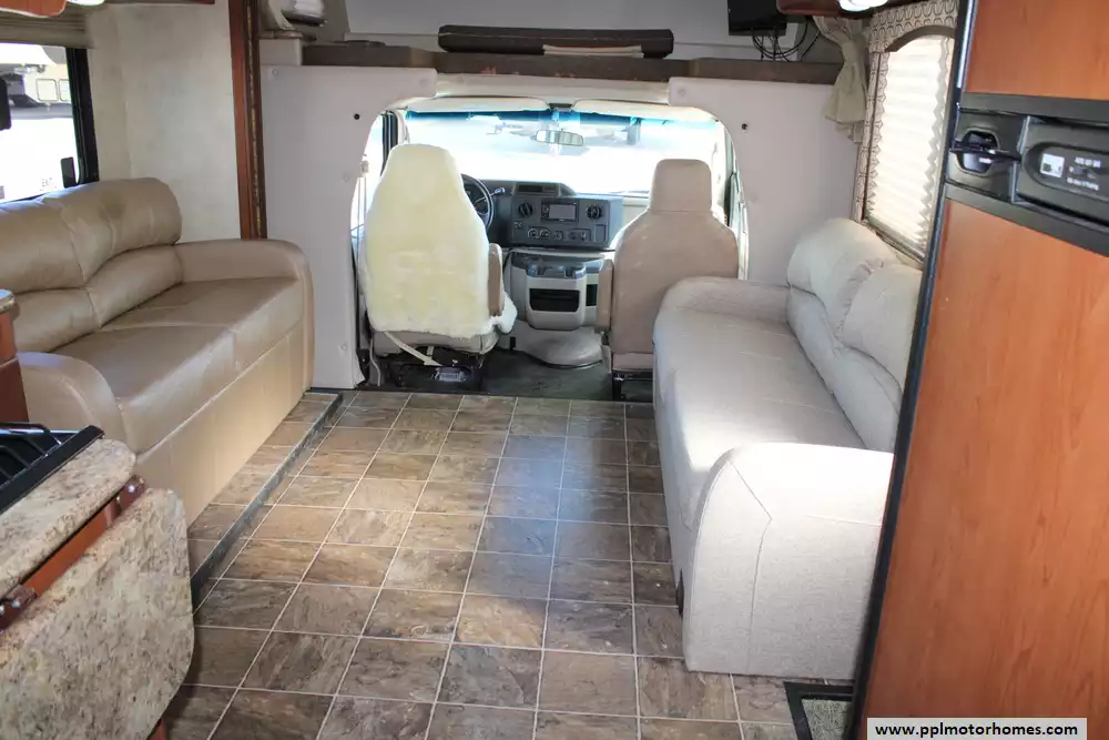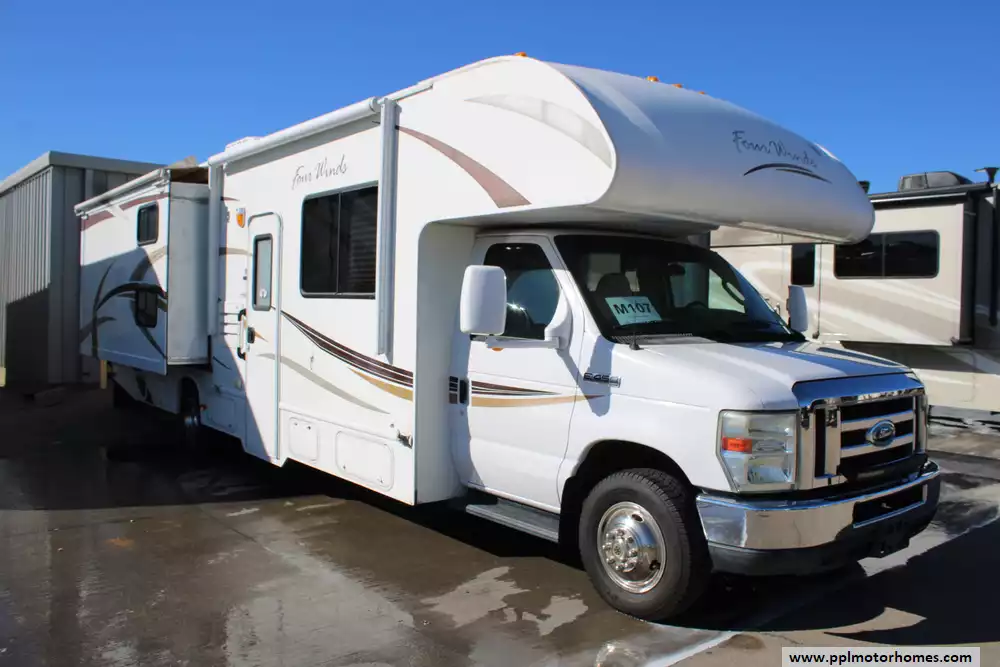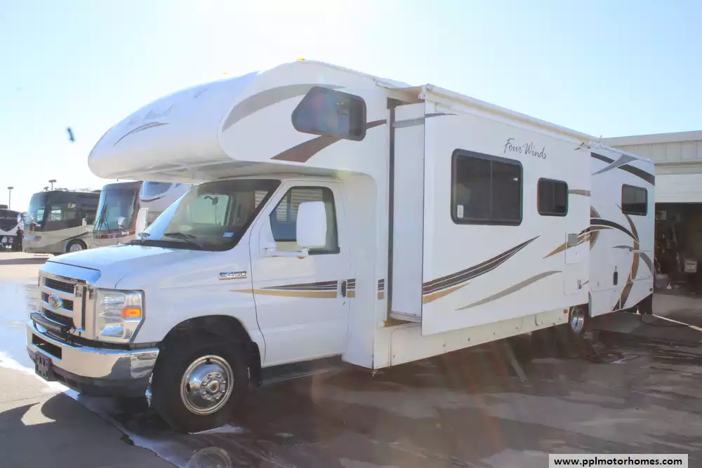 The 2013 Thor Four Winds 31A is a 32-foot Class C motorhome built on a Ford E-450 chassis with a 6.8 L V10 Triton engine producing around 305 hp. With two slide-outs, a full rear queen bedroom, bunk beds, a cab-over sleeping area, and a living area with sofa and dinette, it can accommodate large families or groups (sleeping up to 10 in some configurations). The fresh water tank holds 40 gallons, the gray water 31 gallons and the black water 26 gallons, making it well-suited for weekend or extended trips. The unit offers a comfortable interior height of 82 inches, full kitchen with 3-burner stove/oven and refrigerator, and a 10.5 ft awning for outdoor leisure. With its balance of size, features and sleeping capacity, the 31A is a solid choice for families wanting a versatile motorhome.