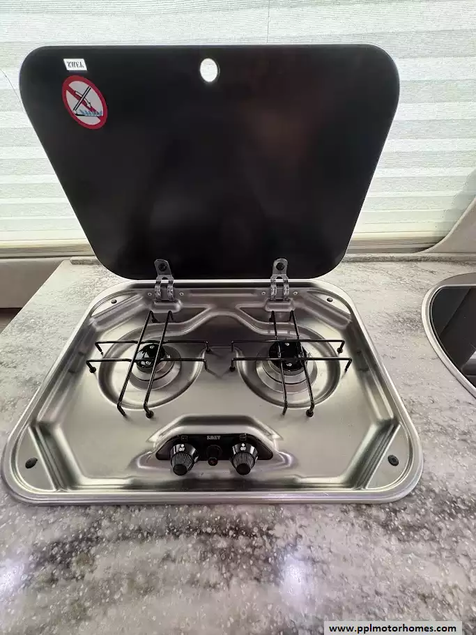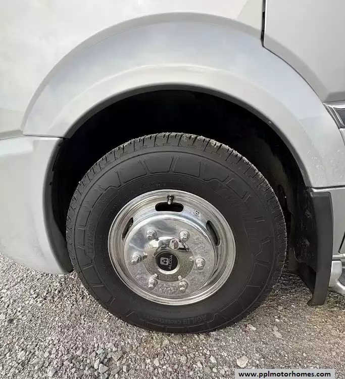 Designed for total independence, this coach comes fully equipped with an Onan propane generator and a rooftop solar panel to power your adventures wherever they lead. The interior features a well-appointed kitchen with a two-burner range, convection microwave, and a single-door refrigerator, while dual TVs and a built-in GPS system keep you entertained and on course. You can enjoy year-round travel thanks to the heated tanks and a non-ducted air conditioner that ensure a comfortable climate in any season. Outside, the automatic main awning and additional window and door awnings provide plenty of shade, while the outside shower is perfect for rinsing off after a day of exploration. This Interstate 3500 Lounge offers a refined, safe, and efficient way to explore the world without compromise.