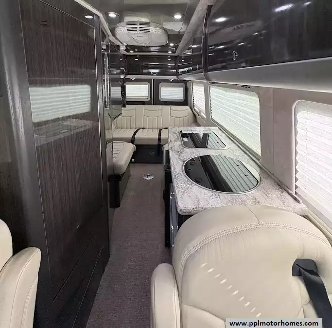 Experience the ultimate in travel luxury with the 2014 Airstream Interstate Series 3500 Lounge, a coach that seamlessly merges legendary Airstream craftsmanship with world-class Mercedes-Benz engineering. Built on the renowned Sprinter chassis and powered by a fuel-efficient 3.0L V6 diesel engine, this 23-foot motorhome is celebrated for its exceptional maneuverability and car-like handling. The Lounge floorplan is a standout in its class, designed specifically for social versatility and premium comfort. Its durable aluminum body and high-end finishes reflect a reputation for longevity and style, making it the perfect choice for those who demand both performance and sophistication on the open road.