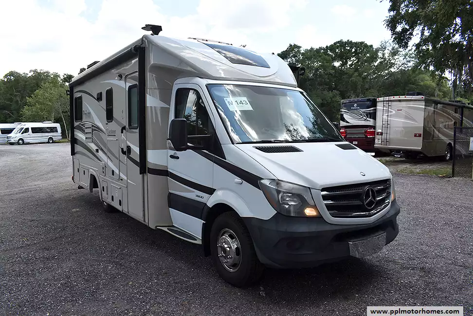 This 2014 Prism M24G has a V6 Mercedes Benz Engine On a Sprinter Chassis, 2 Slide-outs, Onan Generator, 1 Ducted Air Conditioner, Single Door Gas/12v Dometic Refrigerator, Automatic Main Awning And Slide Awning, Backup Camera, Outside Entertainment System, 2 TVs, DVD Player, Outside Shower, Convection Microwave, 3 Burner Range
