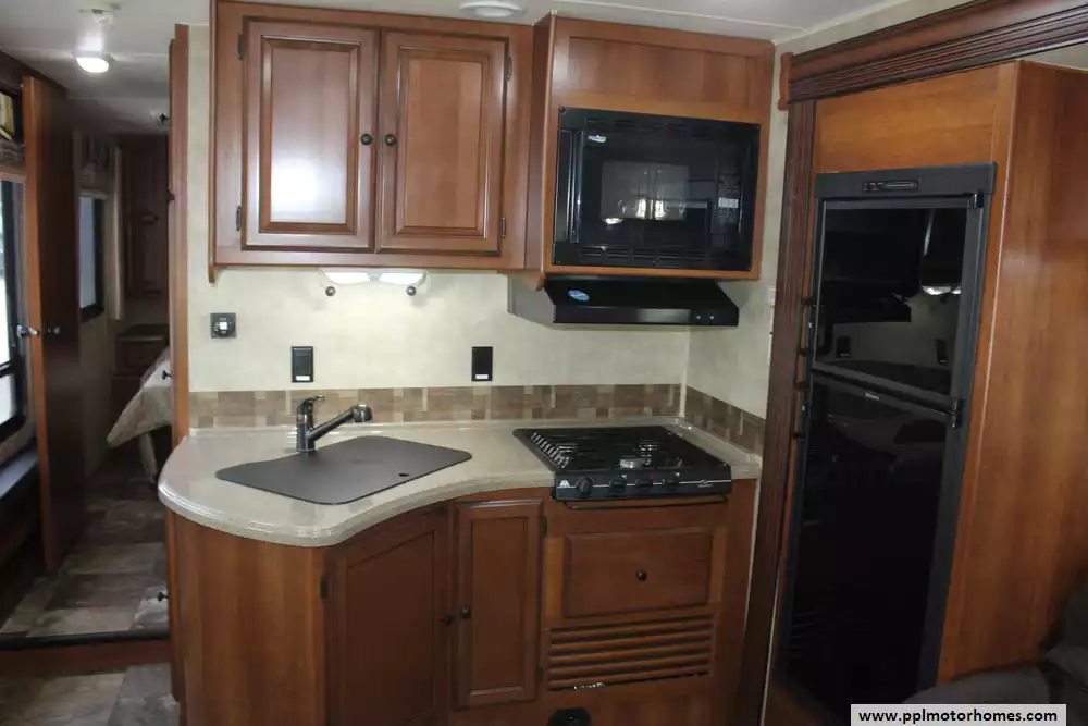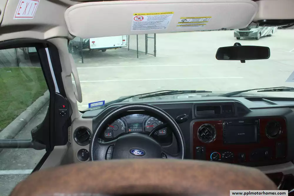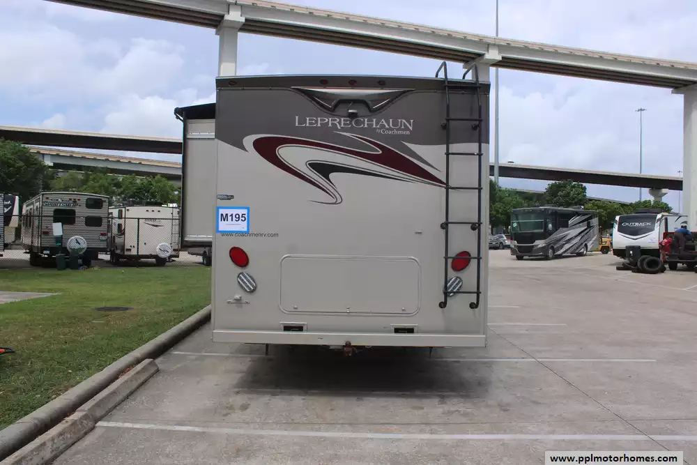 Inside, the 317SA provides a high-end retreat with ducted air conditioning and an Onan gas generator for total independence on the road. The well-appointed kitchen features a 3-burner range, a convection microwave, and a double-door gas/110v Dometic refrigerator to handle all your culinary needs. With two interior TVs, a DVD player, and satellite radio, you have endless entertainment options after a day of exploring. This Leprechaun combines the reliability of Ford engineering with the upscale amenities that have made this model a staple for discerning travelers seeking comfort and style in a Class C motorhome.