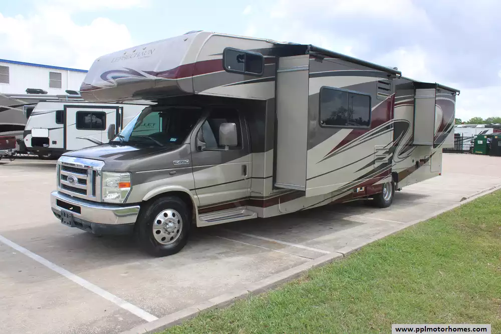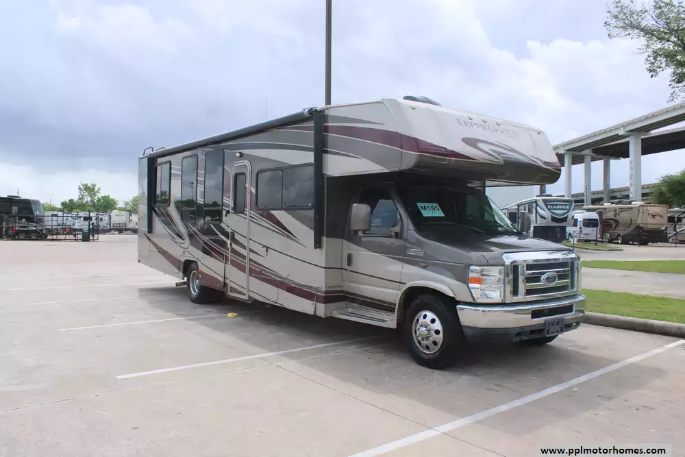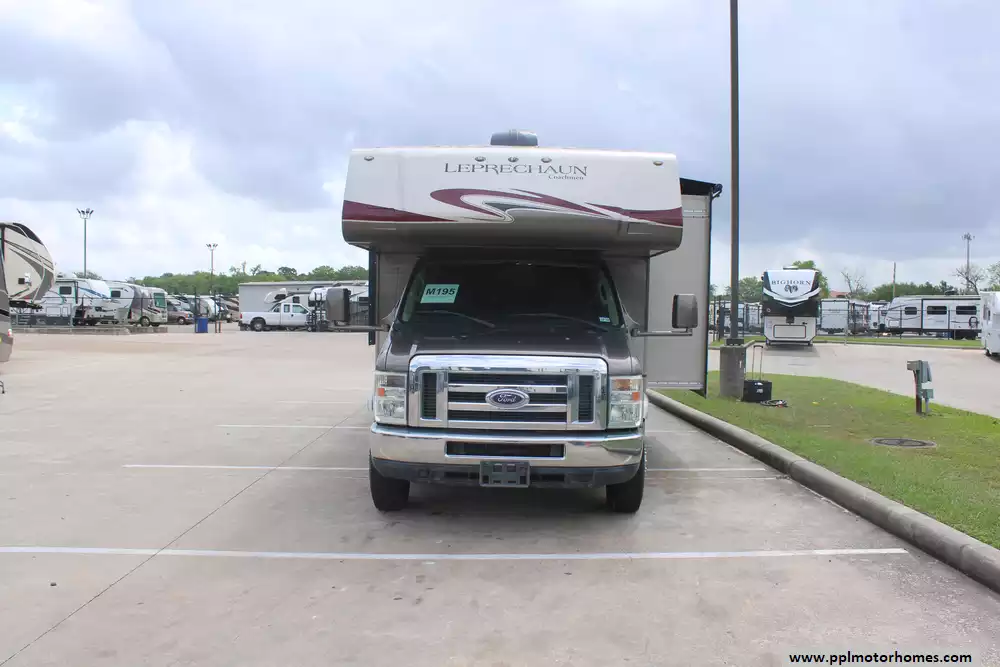 Experience the legendary quality and thoughtful design of the Coachmen Leprechaun with this 2014 317SA, a motorhome long celebrated for its premium construction and family-friendly versatility. Built on the heavy-duty Ford 450 chassis with a powerful V10 engine, this 33-foot Class C offers a stable and confident ride paired with the convenience of automatic levelers and a backup camera for effortless setup. The fiberglass exterior and rubber roof house a spacious dual-slide floor plan that transforms into an impressive outdoor oasis, featuring a massive automatic main awning, a dedicated outdoor kitchen, and an exterior entertainment system perfect for hosting guests at the campsite.