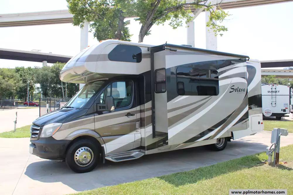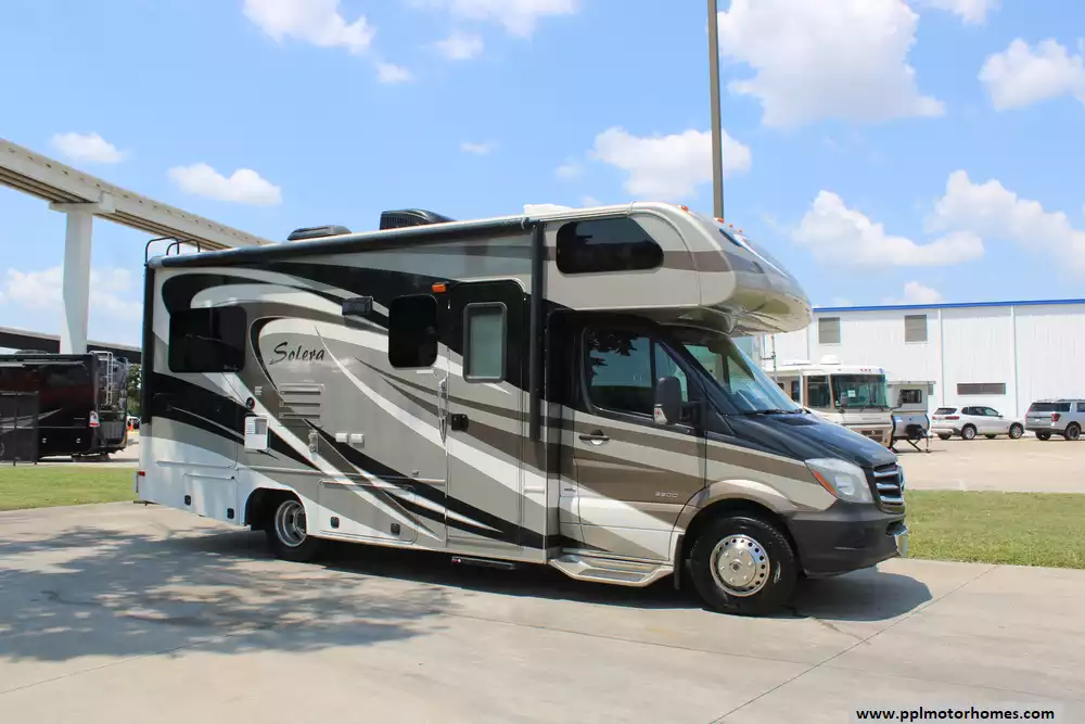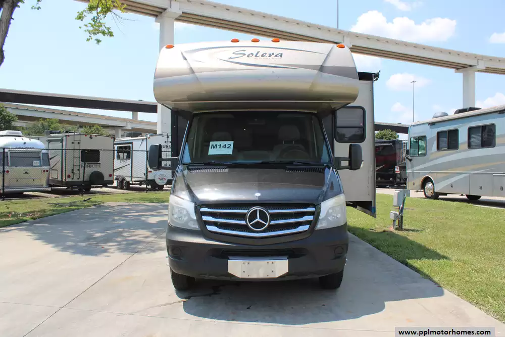 This 2014 Solera 24S is ideal for couples or small families seeking a nimble Class C. Amenities Include...188hp V6 Mercedes Benz Engine On a Sprinter Chassis, 1 Slide-out, Onan Diesel Generator, 1 Ducted Air Conditioner, Levelers, Double Door Gas/110v Dometic Refrigerator, Automatic Main Awning And Slide Awning, Backup Camera, Heated Tanks, TV, Satellite Radio, Convection Microwave, and 3 Burner Range.