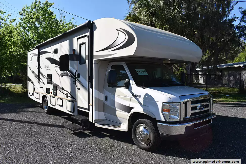 This 2014 Jayco Greyhawk 29MV has a V10 Ford Engine On a Ford 450 Chassis, 2 Slide-outs, Onan Gas Generator, 1 Ducted Air Conditioner, Levelers, Double Door Gas/12v Norcold Refrigerator, Automatic Main Awning And Slide Awning, Backup Camera, Outside Speakers, 2 TVs, Outside Shower, Microwave, 3 Burner Range, Oven