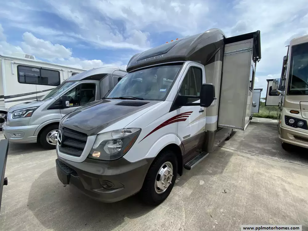 This 2015 Itasca Navion 24G has a 3.0l V-6 Mercedes Benz Engine On a Sprinter Chassis, 2 Slide-outs, Onan Propane Generator, 1 Ducted Air Conditioner, Double Door Gas/110v Norcold Refrigerator, Automatic Main Awning And Slide Awning, Backup Camera, Heated Tanks, Outside Speakers, 2 TVs, DVD Player, Outside Shower, Convection Microwave, 3 Burner Range