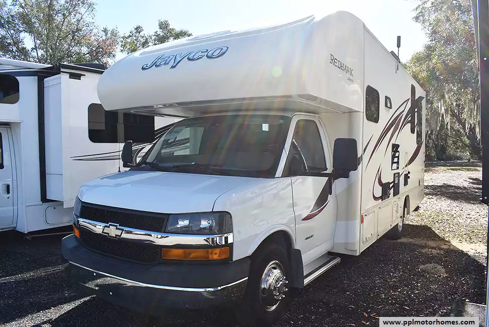 This 2015 Redhawk 23XM has a V8 6.0l Chevy Engine On a Chevy Chassis, 2 Slide-outs, Onan Gas Generator, 1 Ducted Air Conditioner, Levelers, Double Door Gas/12v Norcold Refrigerator, Automatic Main Awning, 2 TVs, Outside Shower, Microwave, 3 Burner Range