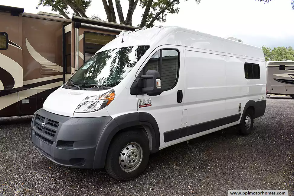This 2015 Ram Pro Master has a Dodge Engine On a Promaster Chassis, Onan Gas Generator, 1 Ducted Air Conditioner, Single Door 12v Frigidaire Refrigerator, Main Awning, Backup Camera, GPS System, TV, DVD Player, Microwave, 2 Burner Range