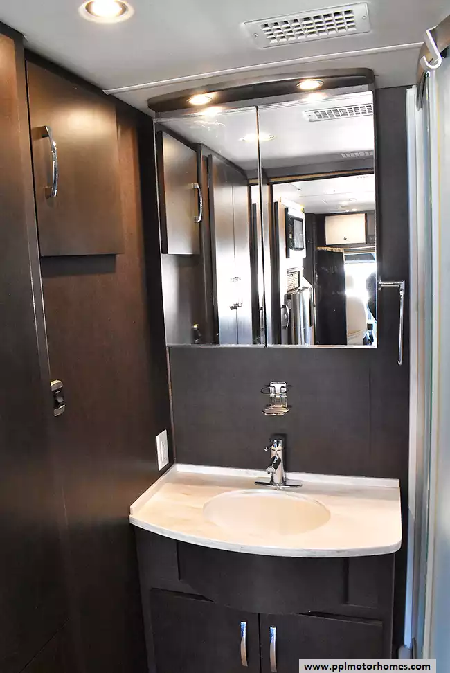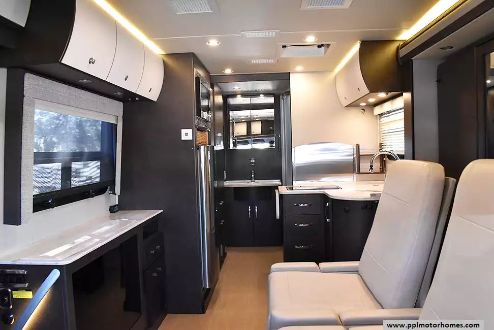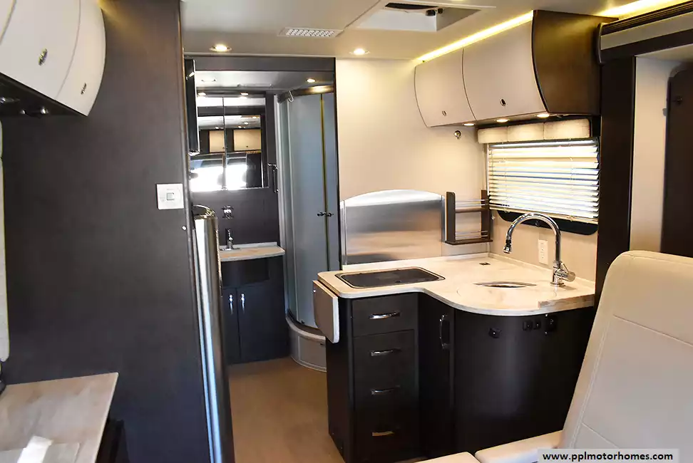 (Floor plan is NOT drawn to scale. Length of vehicle is approximate. Buyer is responsible for verifying actual length. PPL Motor Homes compiled this list of features, specifications, equipment and options as a guide. No representation or warranties, either express or implied, are made as to the accuracy of the information herein. Please verify for yourself all items listed before purchase.)