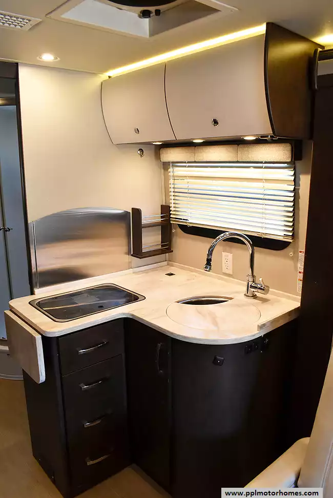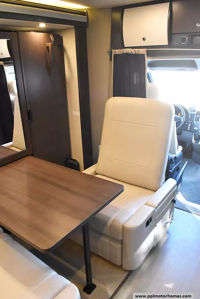 Features include a rear full bath, solid-surface countertops, convection microwave, and ample storage throughout. Easy to drive yet well equipped for extended travel, this Unity is perfect for couples or solo travelers seeking comfort and quality in a compact motorhome.