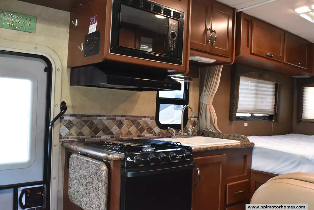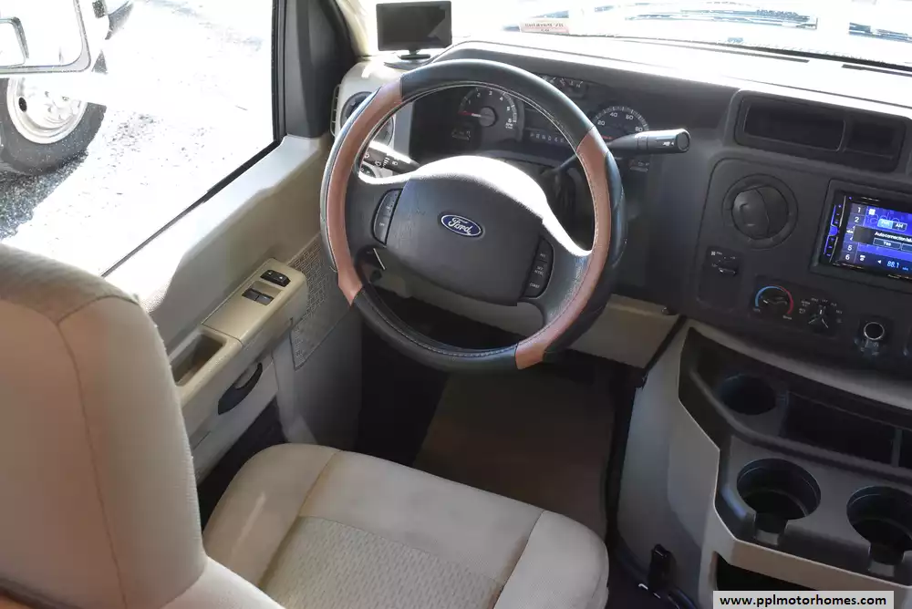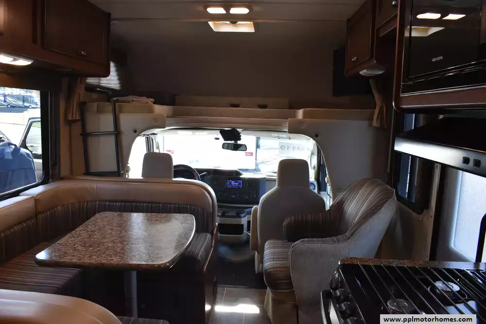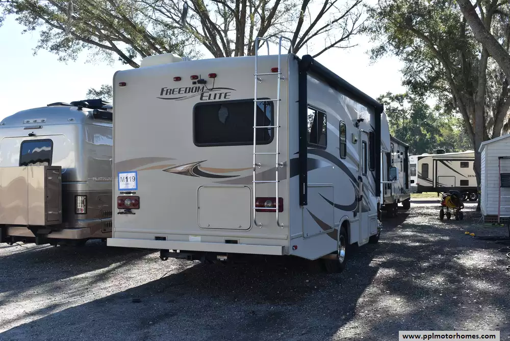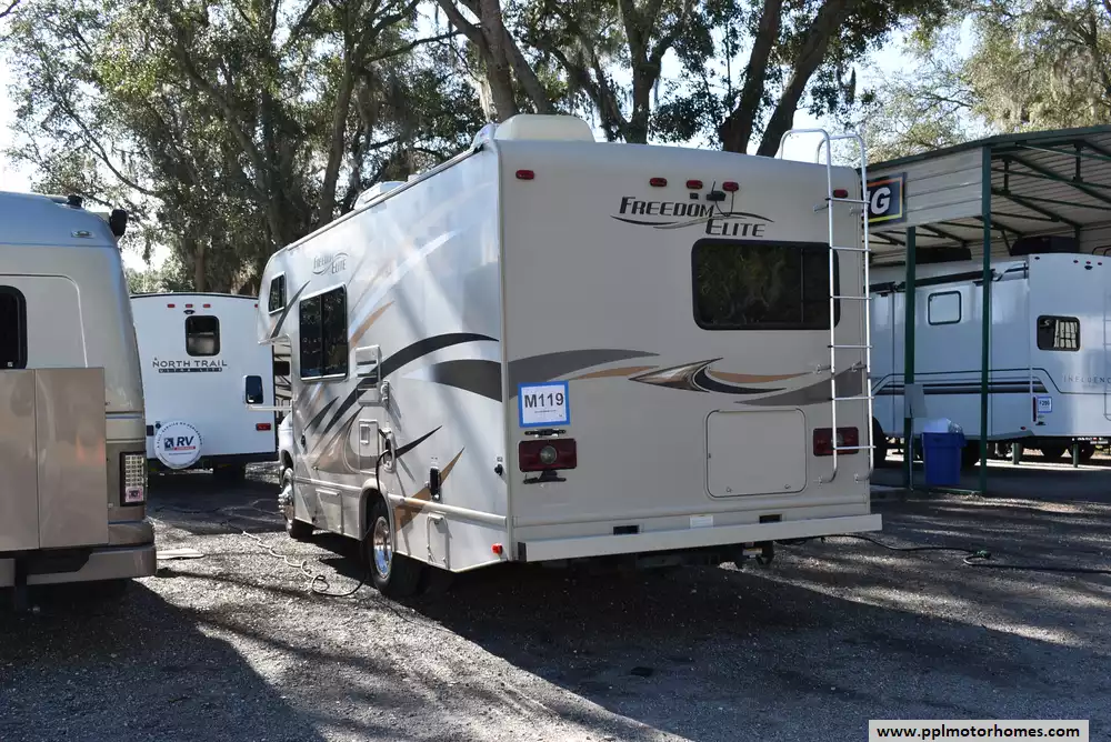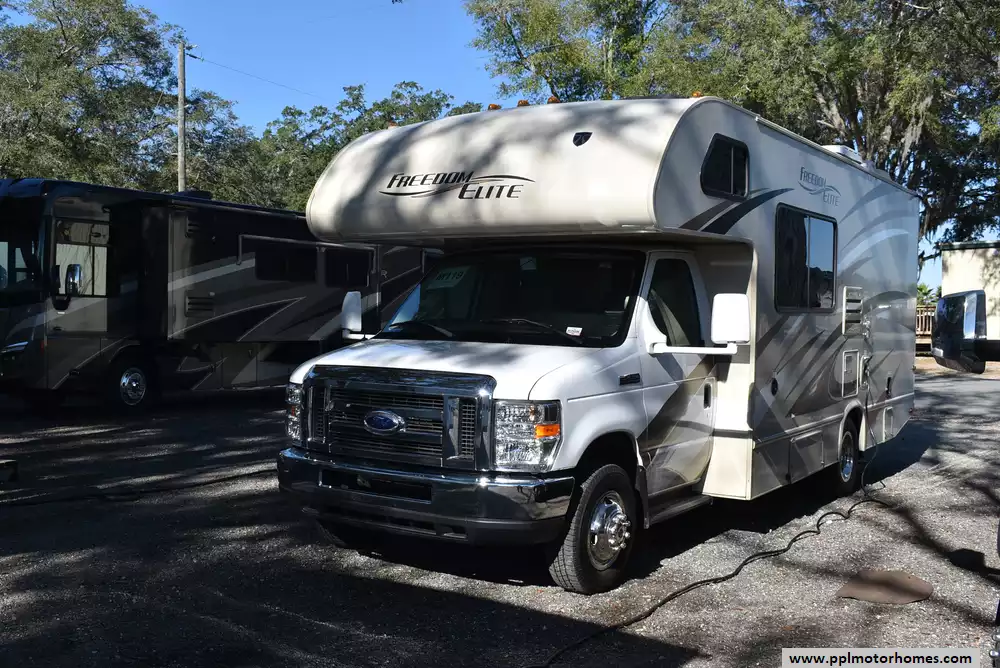 This 2016 Freedom Elite 23H has a V8 Ford Engine On a Ford Chassis, Onan Gas Generator, 1 Ducted Air Conditioner, Double Door Gas/12v Norcold Refrigerator, Automatic Main Awning, Backup Camera, Outside Speakers, TV, Microwave, 3 Burner Range, Oven