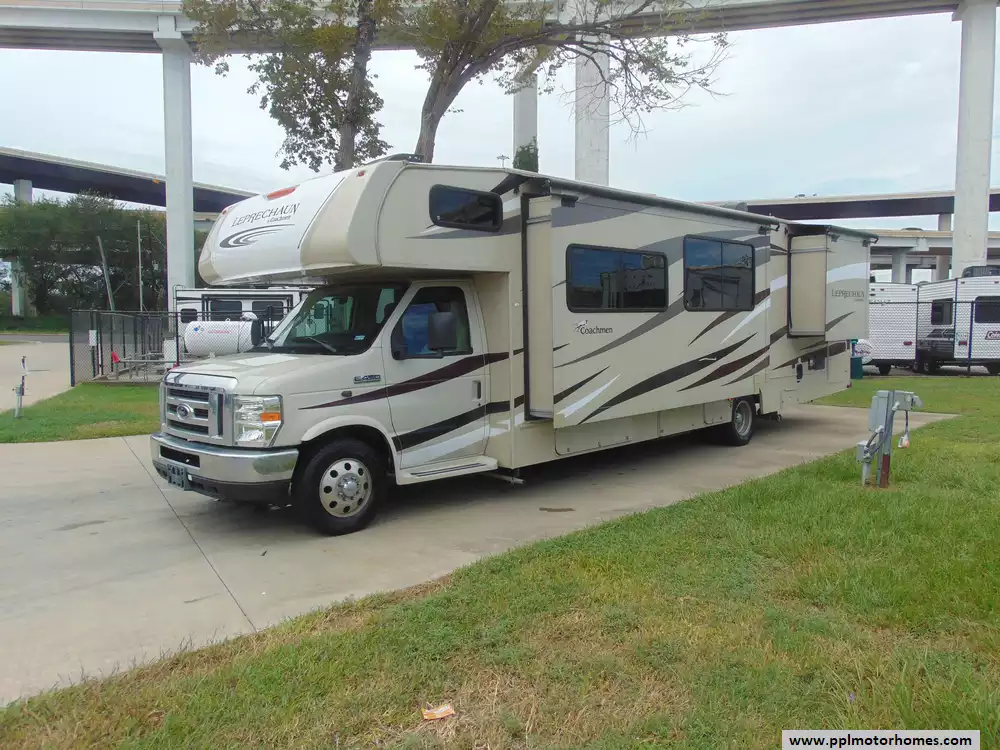 This 2017 Leprechaun 319MB is designed for families or groups looking for a comfortable and well-equipped vehicle for road trips and camping adventures.With a thoughtful layout and a host of modern amenities,it provides a home-like experience on the road.Features Include...V10 6.8l Ford Engine On a Ford 450 Chassis, 2 Slide-outs, Onan Gas Generator, 1 Ducted Air Conditioner, Double Door Gas/110v Dometic Refrigerator, Automatic Main Awning And Slide Awning, Backup Camera, Outside Entertainment System,2 TVs, DVD Player,Satellite Radio,Outside Shower,Convection Microwave,3 Burner Range,and Oven.With its combination of comfort,space,and features,this motorhome offers an excellent option for those seeking a reliable and enjoyable travel experience.