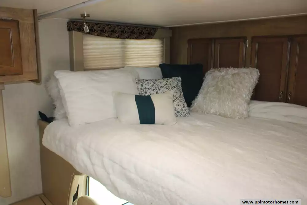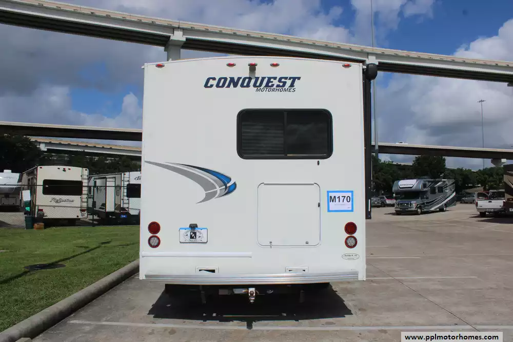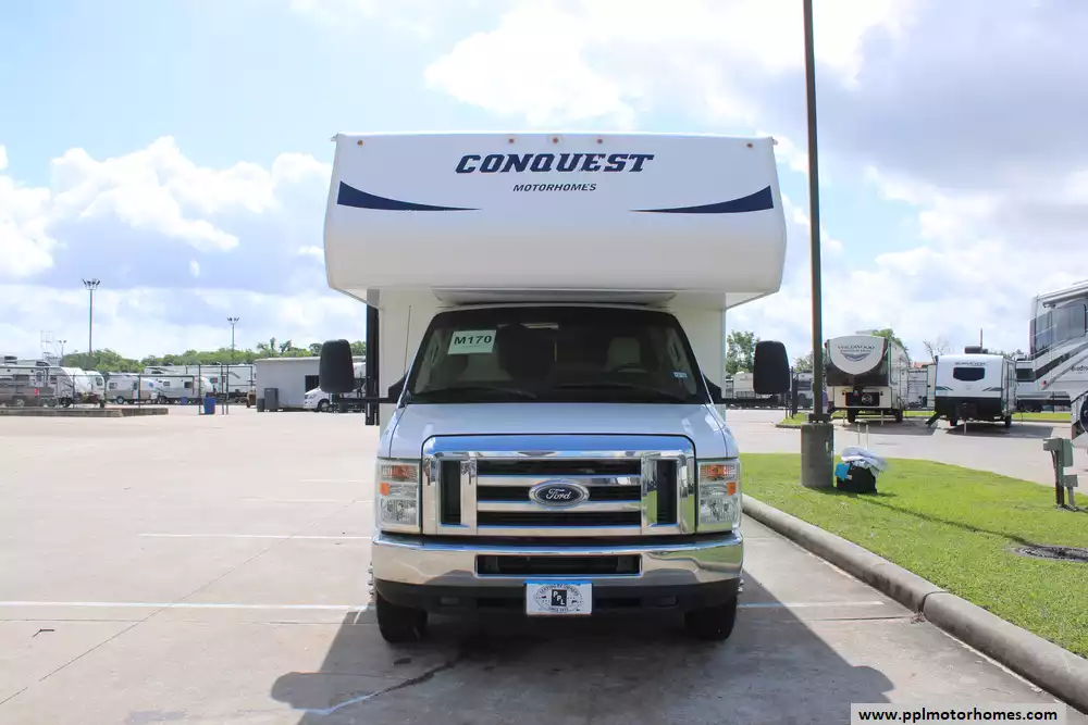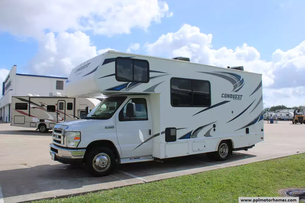 Inside, you will find a thoughtfully designed living space that maximizes comfort without sacrificing functionality. The fully equipped galley includes a three-burner range, oven, microwave, and a double-door gas/110v Dometic refrigerator to handle all your meal-prep needs. Stay perfectly cooled in any climate with the ducted air conditioning system and enjoy true off-grid freedom thanks to the onboard Onan gas generator. With two TVs included for your entertainment, this Conquest 6237 is a well-appointed home on wheels, ready to provide a premium and professional travel experience for your next great adventure.