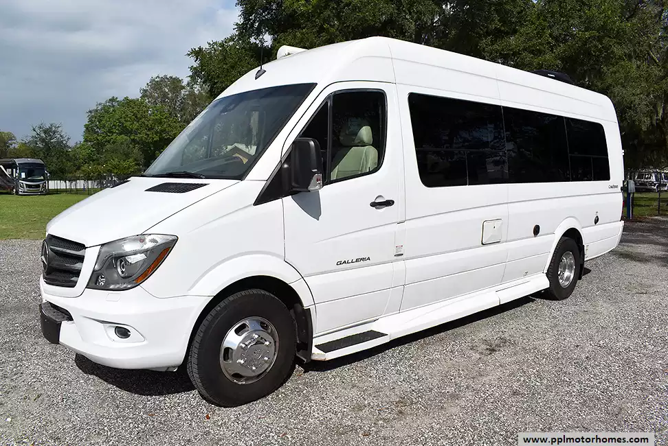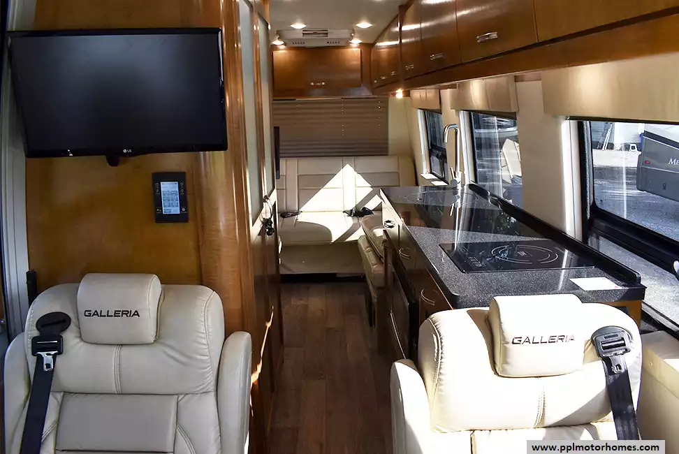 This 2018 Galleria 24Q has a V6 Mercedes Benz Engine On a Sprinter Chassis, Onan Propane Generator, 1 Non-Ducted Air Conditioner, Single Door 110v Refrigerator, Automatic Main Awning, Backup Camera, GPS System, TV, DVD Player, Outside Shower, Convection Microwave, 1 Burner Range