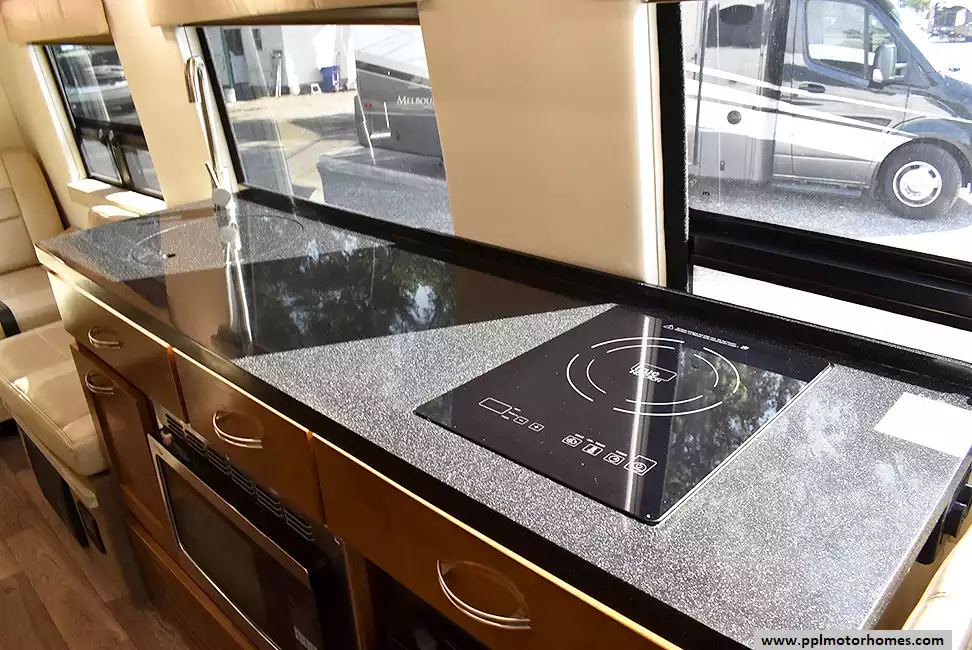 Features include:Induction cooktop for efficient, modern cooking