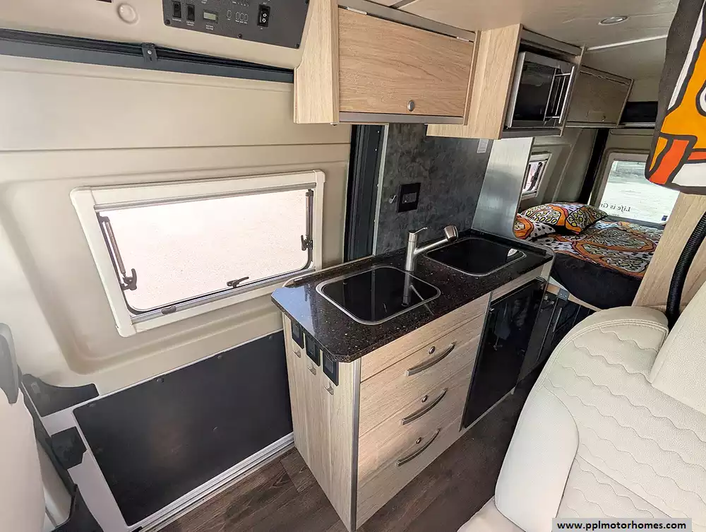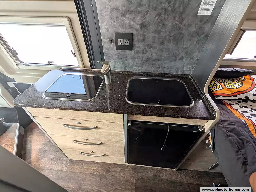 Equipped for complete independence, this motorhome features a solar panel and a satellite dish to keep you connected and powered up wherever the road leads. The well-appointed galley includes a 2 burners, propane fuel range, a convection microwave, and a single-door 12v/120v Norcold refrigerator for easy meal preparation. When it is time to relax, enjoy the entertainment system featuring a TV and DVD player, or step outside under the automatic main awning to take in the views. With additional conveniences like a non-ducted air conditioner, a backup camera for stress-free maneuvering, and a porta potti, this Hymer Aktiv is ready to deliver professional-grade comfort for your next great escape.