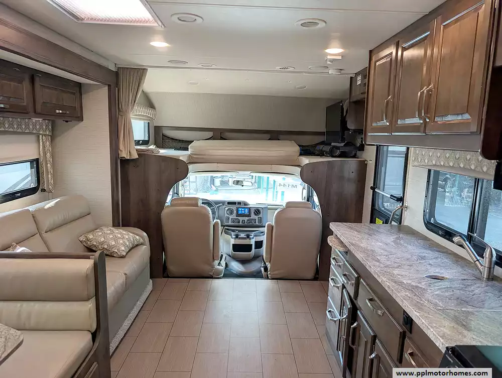 (Floor plan is NOT drawn to scale. Length of vehicle is approximate. Buyer is responsible for verifying actual length. PPL Motor Homes compiled this list of features, specifications, equipment and options as a guide. No representation or warranties, either express or implied, are made as to the accuracy of the information herein. Please verify for yourself all items listed before purchase.)