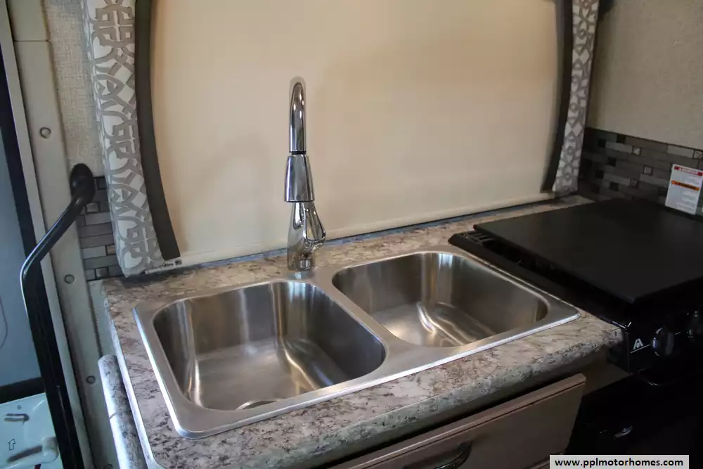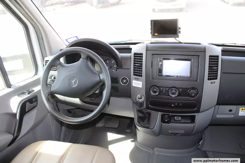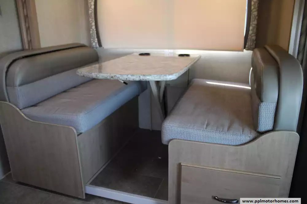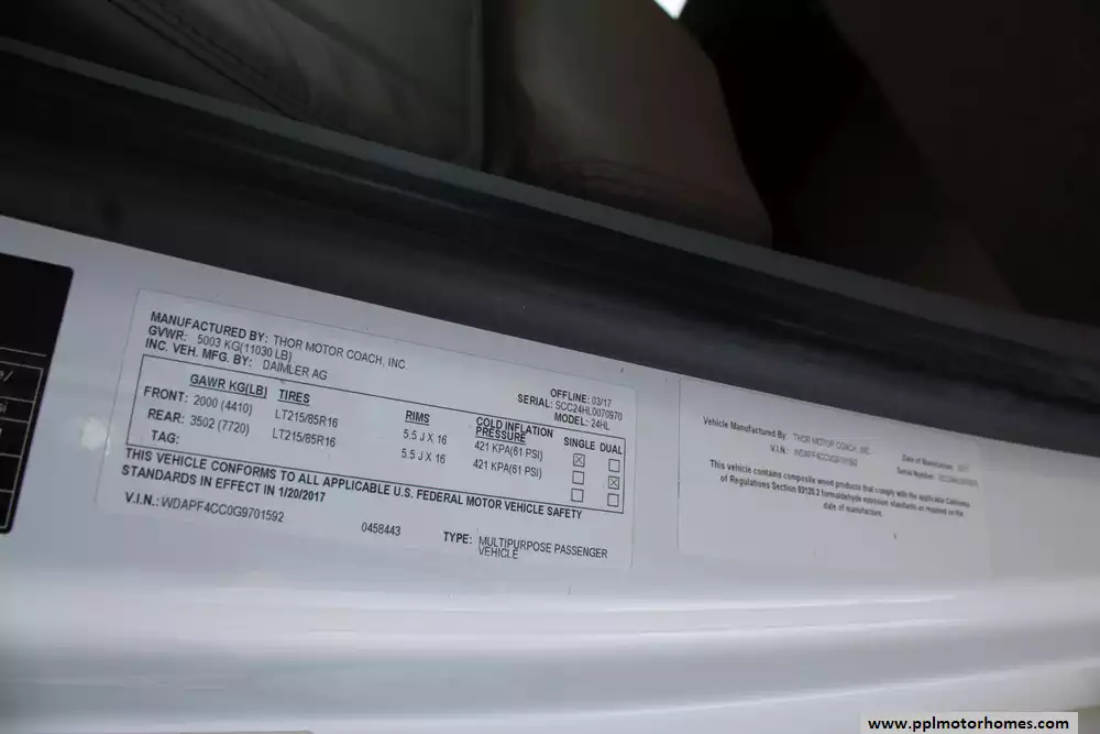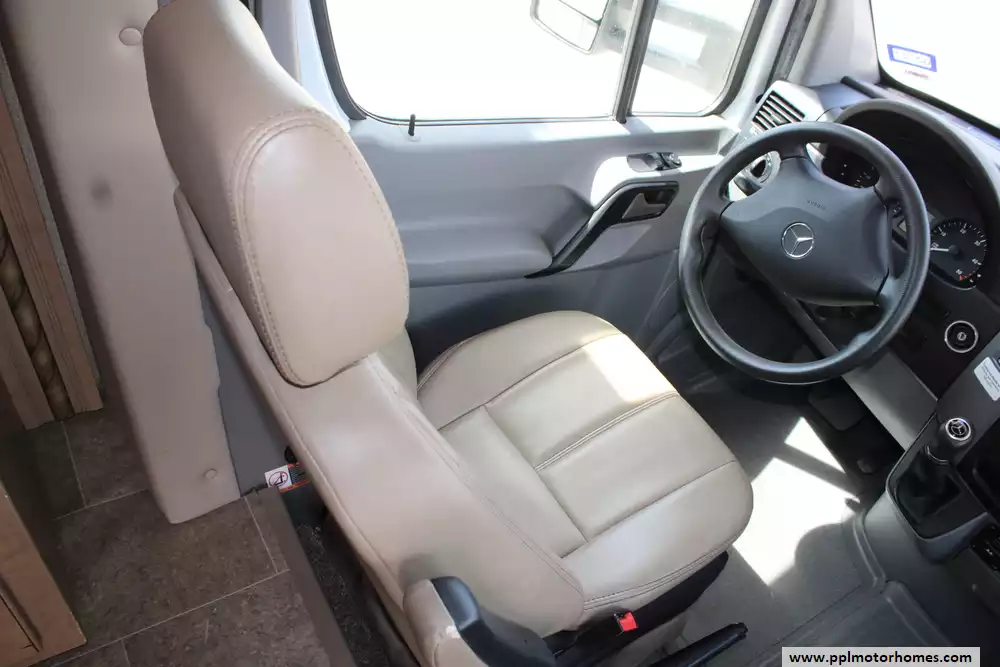 The 2018 Thor Motor Coach Chateau 24HL is a compact Class C motorhome built on a Mercedes-Benz Sprinter 3500 chassis, offering a balance of maneuverability and upscale amenities in a roughly 25-foot layout. Powered by a 3.0L V6 turbo diesel engine producing about 188 horsepower, it delivers reliable performance and solid fuel efficiency for long-distance travel. Inside, the 24HL features two slide-outs that expand the living space, accommodating up to six occupants with a rear queen bed, convertible dinette, and cab-over sleeping area. The coach includes a fully equipped kitchen with a three-burner cooktop, convection microwave, and mid-size refrigerator, along with a full bathroom and ample storage throughout. Additional highlights include a 13,500 BTU air conditioning system, rear and side cameras, onboard generator, tankless water heater, and modern entertainment options, making it a well-rounded option for couples or small families seeking comfort and drivability in a smaller RV package.