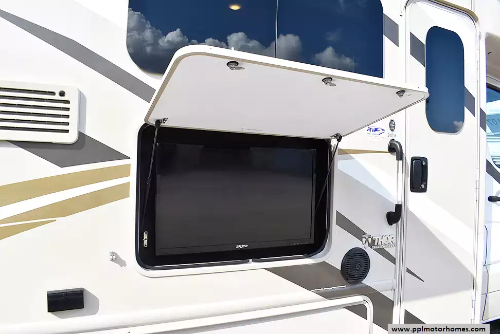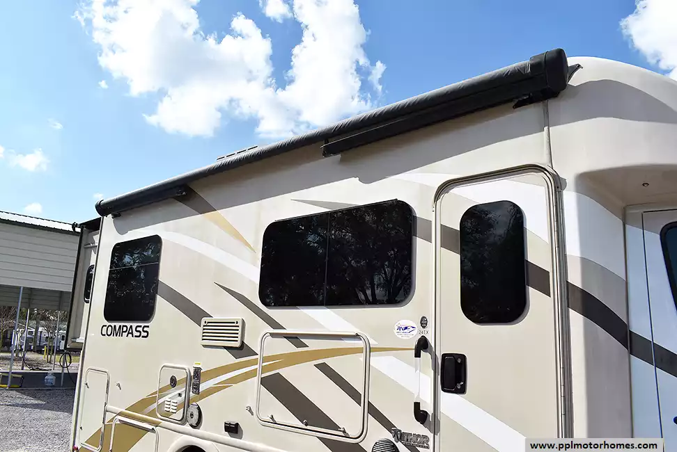 This 2018 Compass 24TX has a 2 Slide-outs, Onan Propane Generator, 1 Non-Ducted Air Conditioner, Single Door Norcold Refrigerator, Automatic Main Awning And Slide/Door Awnings, Backup Camera, Satellite Receiver, Outside Entertainment System, 3 TVs, Satellite Radio, Outside Shower, Convection Microwave, 2 Burner Range
