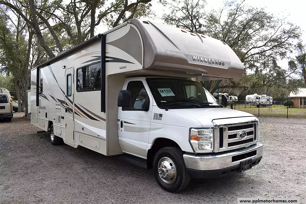 This 2018 Winnebago Minnie Winnie 31G has a Ford Engine On a Ford 450 Chassis, 1 Slide-out, 1 Non-Ducted Air Conditioner, Double Door Gas/110v Norcold Refrigerator, Automatic Main Awning And Slide/Door Awnings, Backup Camera, 2 TVs, Microwave, 3 Burner Range, Oven