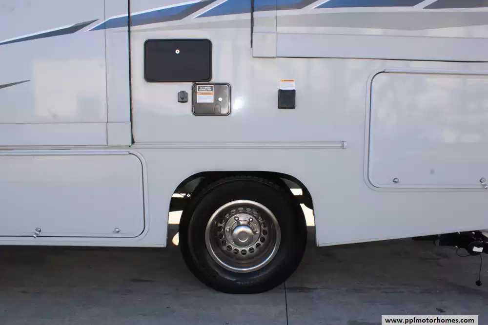 Specs: Length: 25.1 ft., Width: 7.11 ft., Height: 11.4 ft., Interior Height: 6.10 ft., Payload Capacity: 1,380 lbs., Fuel Capacity: 26 gal., Total Fresh Water Tank Capacity: 38 gal., Total Gray Water Tank Capacity: 32 gal., Total Black Water Tank Capacity: 28 gal., Total Propane Tank Capacity: 85 lbs.