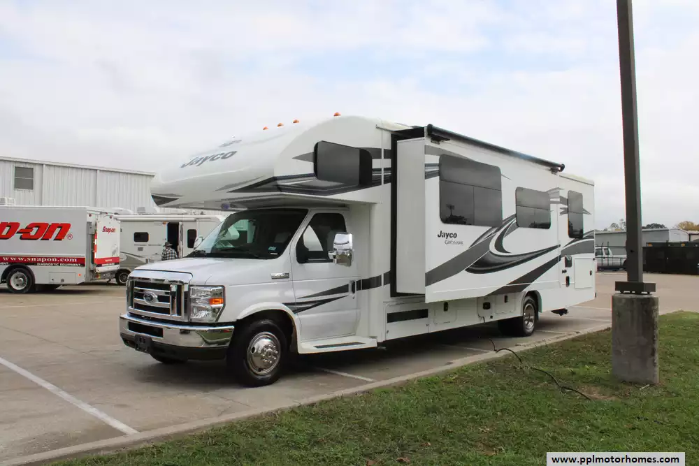 Your Time Spent In This 2019 Jayco Greyhawk 30Z Promises Many Hours of Relaxation and Cherished Memories.Amenities Include...Has a 6.8l V10 Ford Engine On a Ford 450 Chassis, 2 Slide-outs, Onan Gas Generator, 2 Ducted Air Conditioners, Levelers, Double Door Gas/110v Norcold Refrigerator, Automatic Main Awning, Backup Camera, Solar Panel, Heated Tanks, Outside Speakers,Solar Panels,Lithium Batteries,Internet Antenna,2 AC's,Back Up Camera,Side View Cameras,and Inside Camera 2 TVs, DVD Player, Outside Shower, Microwave,3 Burner Range,and Oven.Constructed for Full Time Living!