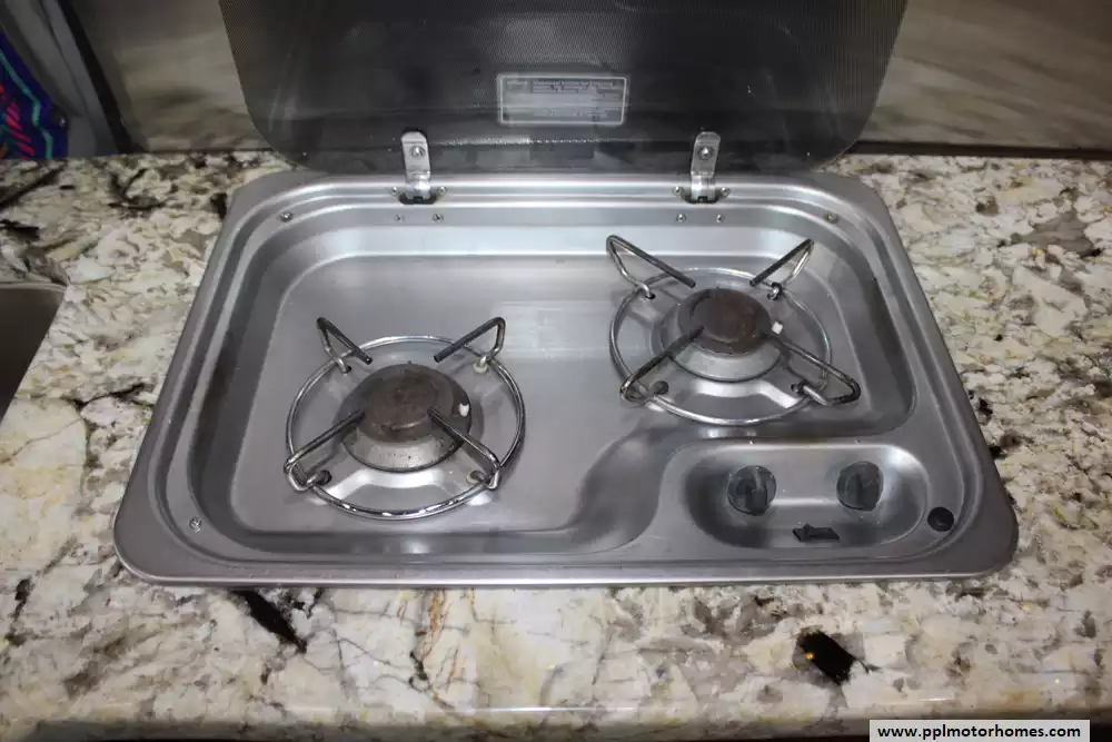 Inside, the Simplicity lives up to its name with a thoughtfully designed layout that maximizes every inch of space. The well-equipped galley features a two-burner range, microwave, and a single-door Norcold refrigerator to keep your essentials fresh. Stay comfortable in any climate with the non-ducted air conditioner, and enjoy the freedom of off-grid power thanks to the integrated solar panel. When you reach your destination, the backup camera makes parking a breeze, and the automatic main awning extends at the touch of a button to create an instant outdoor living area for you to enjoy the view.