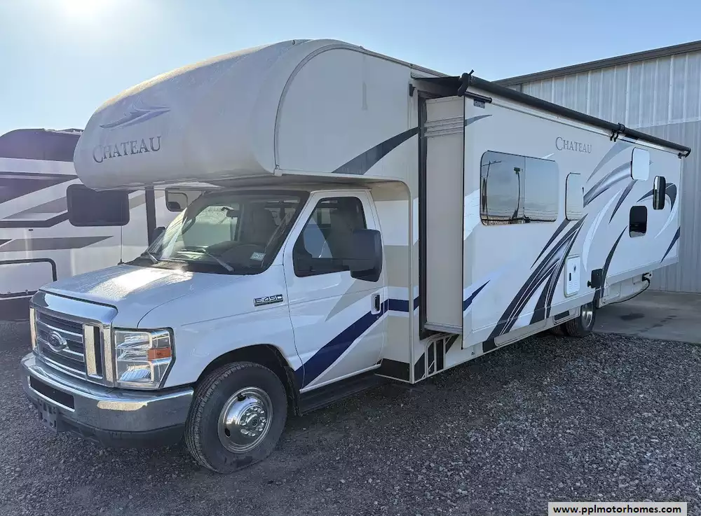 The 2019 Thor Motor Coach Chateau 31E is a 32-foot Class C "bunkhouse" motorhome designed for families, featuring a full-wall slide-out and can sleep up to 10 people.