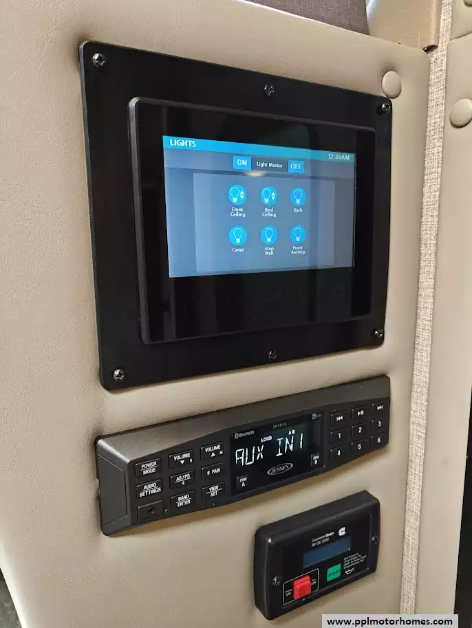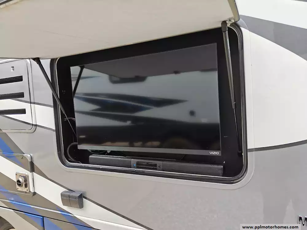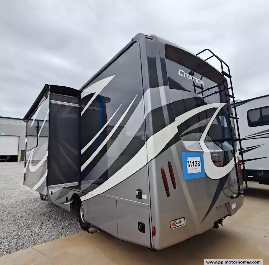 Inside, the Citation offers a sophisticated retreat featuring a double-door 110v/12v Norcold refrigerator and a two-burner range to handle all your culinary needs. Stay entertained wherever the road takes you with three separate TVs, a built-in GPS system, and an outside entertainment center for relaxing evenings under the automatic main awning or the dedicated window and door awnings. Safety and convenience are prioritized with a backup camera for stress-free parking, ensuring that every journey in this well-appointed coach is as comfortable as it is reliable.