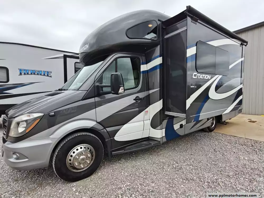 Experience the perfect blend of luxury and maneuverability with this 2019 Citation 24SJ, a premium 26-foot Class C motorhome built on the legendary Mercedes-Benz Sprinter chassis. Renowned for its fuel-efficient 3.0L V6 engine and smooth handling, this coach is a favorite for travelers who want the amenities of a full-sized motorhome with the easy drivability of a smaller vehicle. The durable fiberglass construction and TPO roof are paired with a single slide-out to maximize your interior living space, while integrated levelers and an Onan diesel generator make setting up for off-grid adventures effortless. Whether you are navigating winding mountain roads or tight campsites in national parks, this motorhome provides the stability and performance the Mercedes-Benz name is known for.