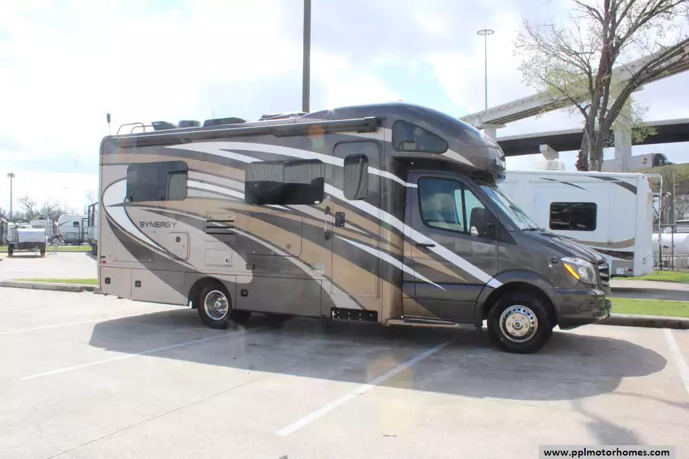 Experience the perfect combination of luxury and agility with this 2019 Synergy 24SJ. Built on the world-renowned Mercedes-Benz Sprinter chassis and powered by a fuel-efficient 3.0L V6 diesel engine, this 25-foot motorhome is celebrated for its smooth, car-like handling and ability to navigate tight scenic routes or national park campsites with ease. The exterior is designed for effortless setup and durability, featuring a fiberglass body, rubber roof, and automatic levelers to ensure a stable foundation wherever you roam. Whether you are backing into a site with the assistance of the integrated backup camera or relaxing under the automatic main awning with outside speakers, this coach offers a premium travel experience on a nimble, high-performance platform.
