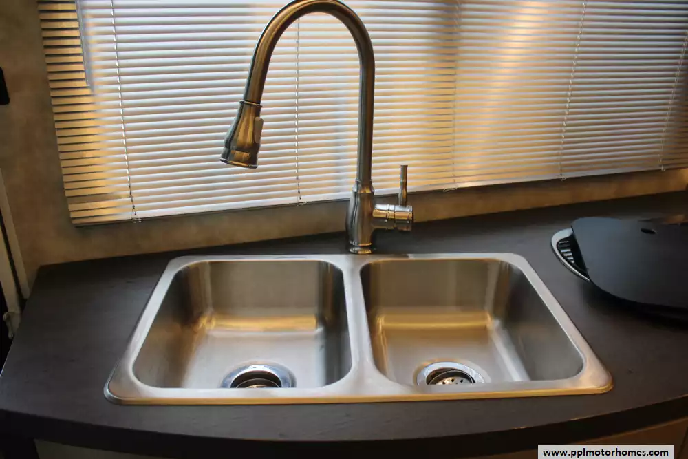 Specs: Length: 25.8 ft., Width: 7.6 ft., Height: 11.1 ft., Interior Height: 6.8 ft., Interior Width: 7.3 ft., Fuel Capacity: 26.4 gal., Total Fresh Water Tank Capacity: 32 gal., Total Gray Water Tank Capacity: 40 gal., Total Black Water Capacity: 34 gal., Total Propane Tank Capacity: 13 gal.