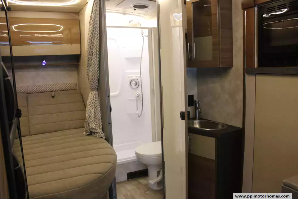 (Floor plan is NOT drawn to scale. Length of vehicle is approximate. Buyer is responsible for verifying actual length. PPL Motor Homes compiled this list of features, specifications, equipment and options as a guide. No representation or warranties, either express or implied, are made as to the accuracy of the information herein. Please verify for yourself all items listed before purchase.)