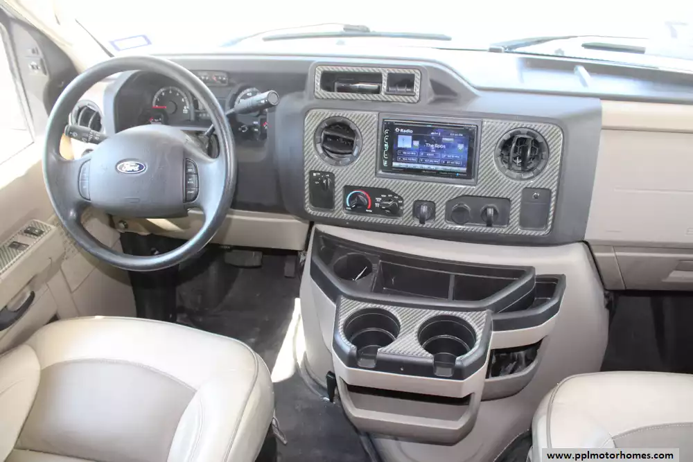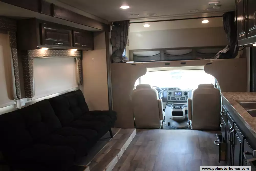 The 2020 Jayco Greyhawk 29MV is a versatile and well-equipped Class C motorhome built on a Ford E-450 chassis (Triton 6.8L V10), delivering around 305 hp and 420 lb-ft of torque for road-rich performance. Stretching about 32' 6" in length, with two slide-outs and a full wall slide to expand the living space, it normally sleeps six, featuring a rear queen bed, cab-over bunk, dinette, and sofa bed combo. However, this unit has had the dinette and sofa bed combo removed in place of a futon sleeper sitting on top of a custom platform. It comes outfitted with substantial utility, a 55-gallon fuel tank, 47-gallon fresh water capacity, 41-gallon gray tank, and 32-gallon black tank, and creature comforts like a 15,000-BTU air conditioner, a roomy kitchen with double-door refrigerator, and tech touches like backup cameras, electric awning with LED lighting, and a modern infotainment dash. Compact enough for maneuverability, yet large enough for that "full-time" feel, the 29MV blends driveability, comfort, and style. An additional disclosure on this motorhome is that it once had a cat in it.