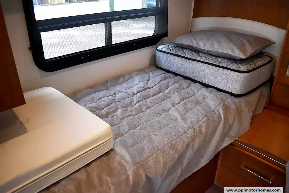 The highly sought-after Twin Bed (TB) floorplan is celebrated for its incredible versatility, offering two separate sleeping areas that can easily be converted into a spacious king-size bed. Inside, you will find a refined living space equipped with a convection microwave, a two-burner range, and a versatile 3-way Dometic refrigerator. Stay comfortable in any climate with a ducted air conditioner and an Onan propane generator for off-grid power. The premium technology suite-featuring a GPS system, satellite receiver, satellite radio, and TV-ensures you stay connected and entertained. From the expansive automatic main awning to the convenient outside shower, every detail of this Unity U24TB is engineered for the discerning traveler who demands both luxury and performance.