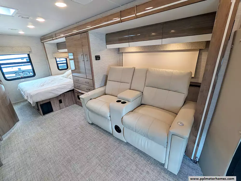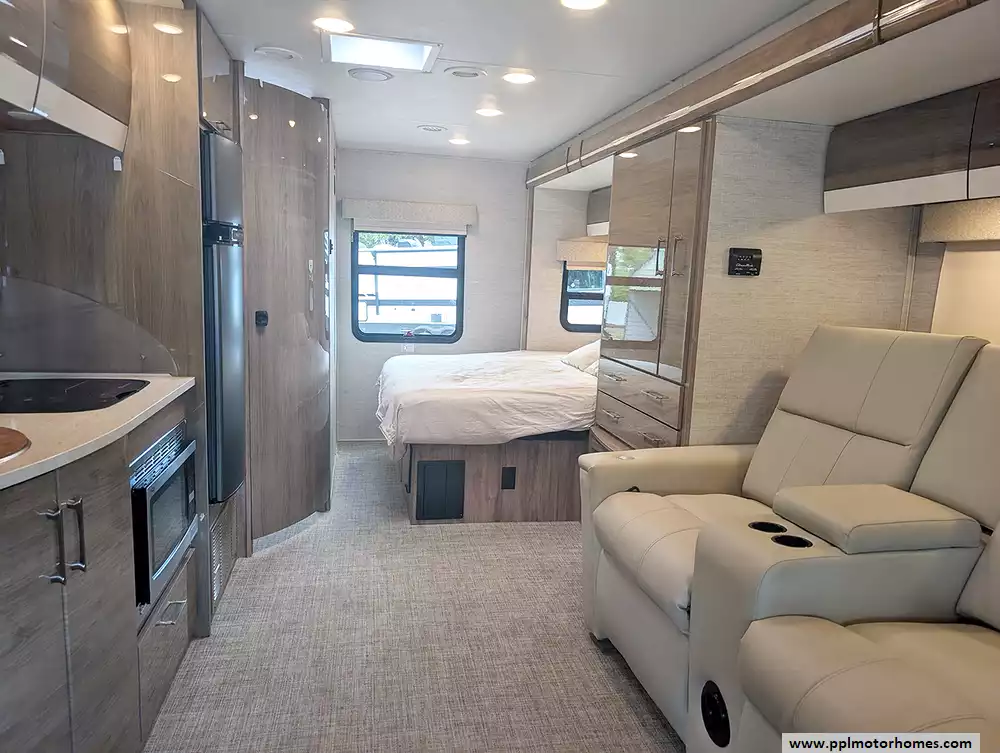 (Floor plan is NOT drawn to scale. Length of vehicle is approximate. Buyer is responsible for verifying actual length. PPL Motor Homes compiled this list of features, specifications, equipment and options as a guide. No representation or warranties, either express or implied, are made as to the accuracy of the information herein. Please verify for yourself all items listed before purchase.)
