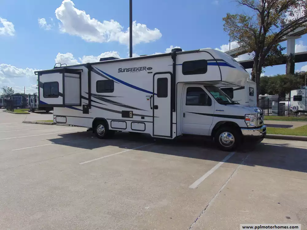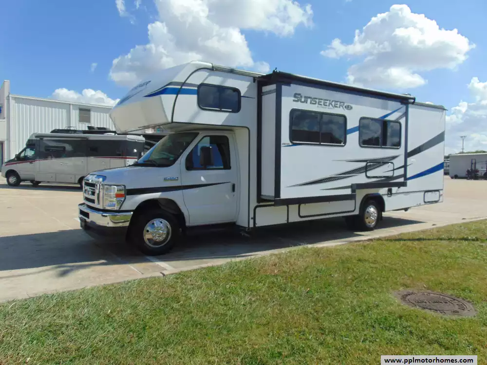 This 2021 Sunseeker Le 2550DS is a well-designed Class C motorhome that combines comfort,functionality,and ease of use.It provides ample living space while remaining relatively easy to drive and maneuver.Amenities Include...7.3l V8 Ford Engine On a Ford 450 Chassis, 2 Slide-outs, Onan Gas Generator, 1 Ducted Air Conditioner, Levelers, Double Door 110v Magic Chef Refrigerator, Automatic Main Awning And Slide Awning, Backup Camera, Outside Speakers, TV, Convection Microwave,and 3 Burner Range.The combination of compact size,spacious interior,and premium features makes this an ideal motorhome for families and couples looking for adventure.