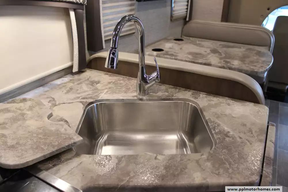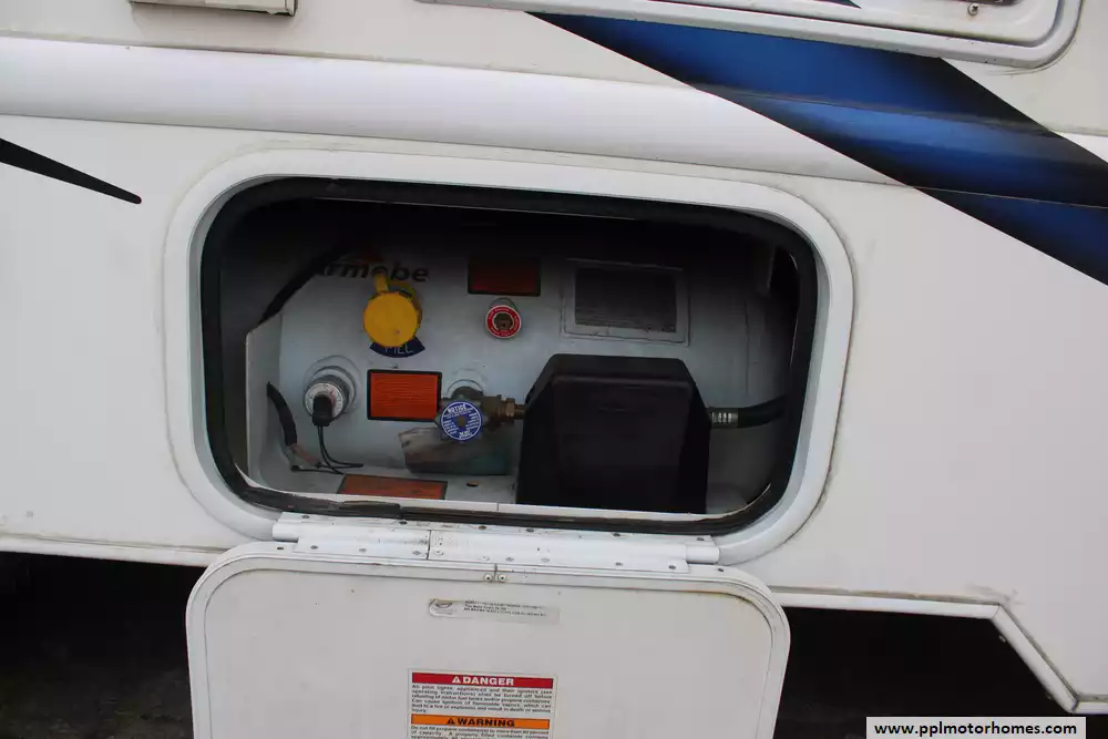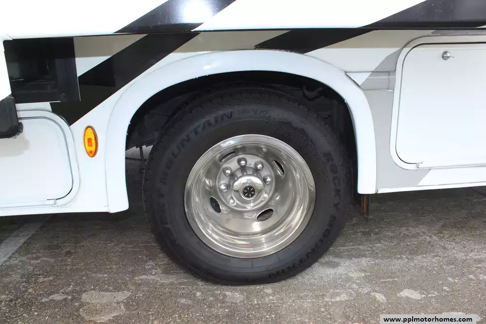 Specs: Length: 32.2 ft., Width: 8.25 ft., Height: 11.2 ft., Interior Height: 7 ft., Fuel Capacity: 55 gal., Total Fresh Water Tank Capacity: 40 gal., Total Gray Water Tank Capacity: 35 gal., Total Black Water Tank Capacity: 31 gal., Total Propane Tank Capacity: 40.9 lbs.