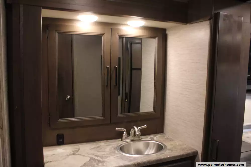 (Floor plan is NOT drawn to scale. Length of vehicle is approximate. Buyer is responsible for verifying actual length. PPL Motor Homes compiled this list of features, specifications, equipment and options as a guide. No representation or warranties, either express or implied, are made as to the accuracy of the information herein. Please verify for yourself all items listed before purchase.)