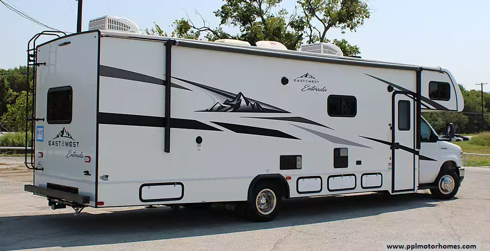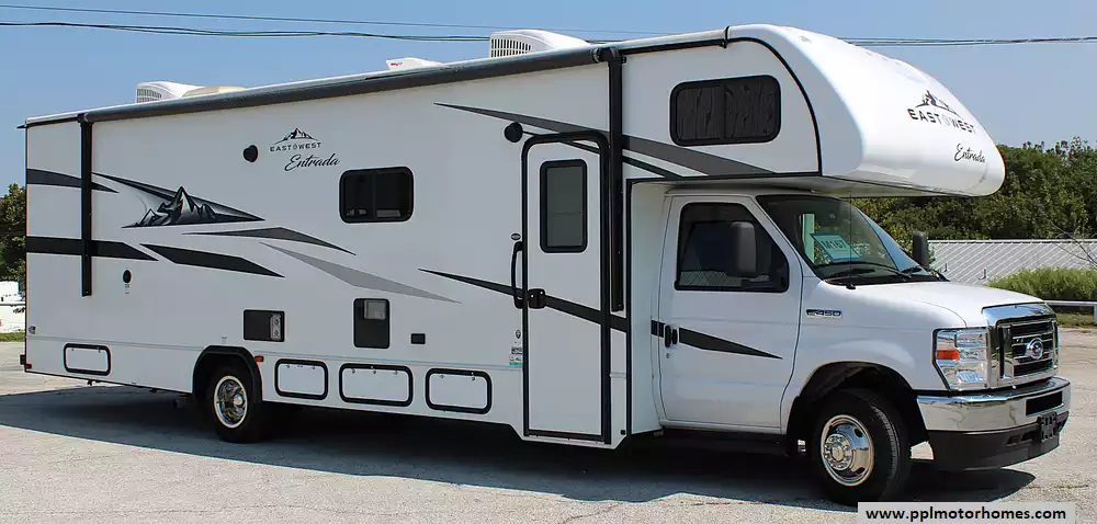 2022 East to West Entrada 2900DS, a Class C motorhome designed to take every journey to the next level. Stretching just over 32 feet, this coach offers a perfect balance of comfort and capability, ready to handle winding roads while delivering all the elegance of a rolling retreat. With sleeping space for up to 7-8 people, including a private walk-around queen bed, a spacious cab-over bunk, a convertible U-shaped dinette, and a sofa, it ensures everyone has a cozy spot to relax after a day of exploration. Whether it's family, friends, or both, this motorhome makes sure nobody is left behind.