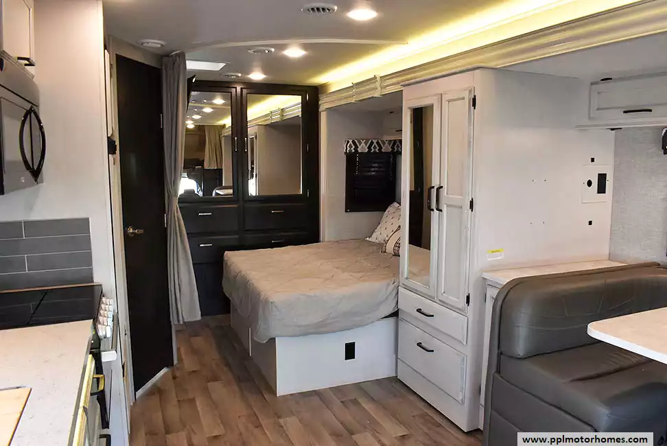 (Floor plan is NOT drawn to scale. Length of vehicle is approximate. Buyer is responsible for verifying actual length. PPL Motor Homes compiled this list of features, specifications, equipment and options as a guide. No representation or warranties, either express or implied, are made as to the accuracy of the information herein. Please verify for yourself all items listed before purchase.)