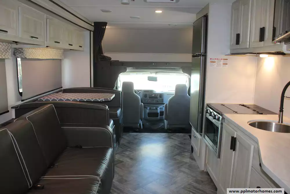 Experience the perfect blend of power and maneuverability with this 2022 Forester 2551DS. Built on the rugged Ford 450 chassis and powered by a 7.3L V10 engine, this 29-foot Class C motorhome is designed for those who demand reliability and a smooth driving experience on the open road. The Forester brand is highly regarded for its commitment to quality, featuring a durable fiberglass body and a rubber roof that offer superior protection against the elements. This unit is fully equipped for off-grid adventures and extended stays, featuring two slide-outs for an airy interior, a factory-installed solar panel, and a dependable Onan gas generator. With heated tanks and a ducted air conditioner, this motorhome is built for multi-season travel, ensuring you stay comfortable in any climate.