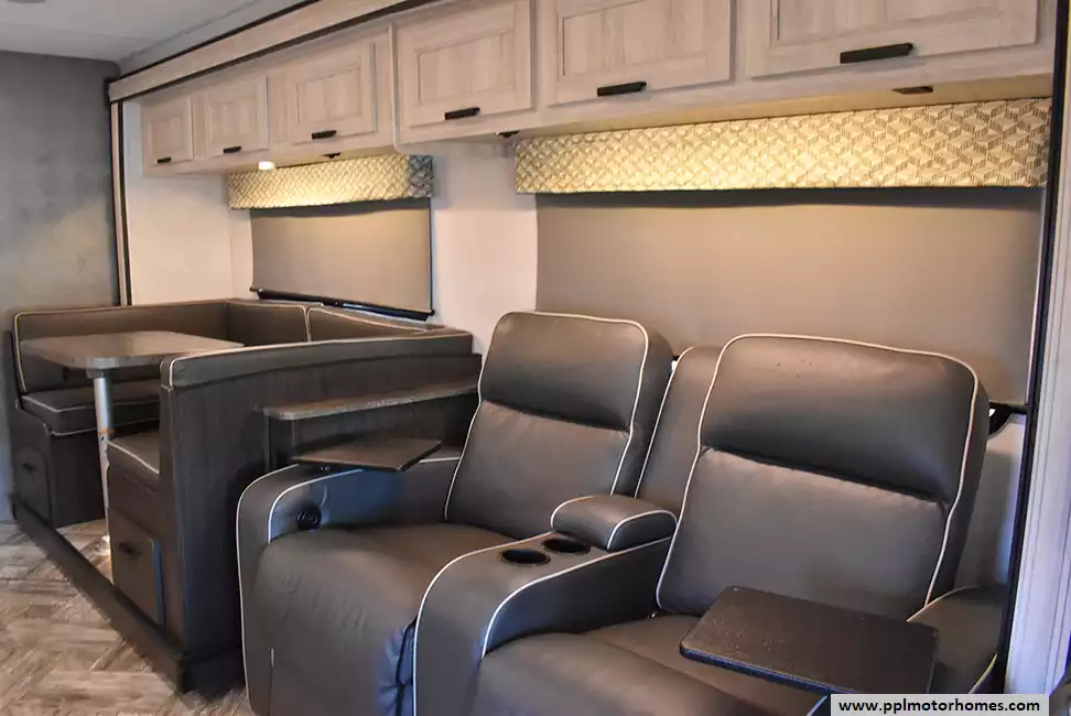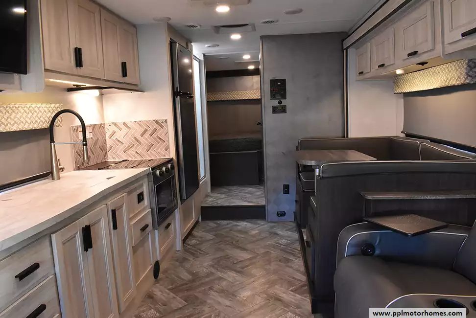 (Floor plan is NOT drawn to scale. Length of vehicle is approximate. Buyer is responsible for verifying actual length. PPL Motor Homes compiled this list of features, specifications, equipment and options as a guide. No representation or warranties, either express or implied, are made as to the accuracy of the information herein. Please verify for yourself all items listed before purchase.)