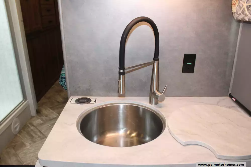 Specs: Length: 30.9 ft., Width: 8.41 ft., Height: 11.3 ft., Fuel Capacity: 55 gal., Total Fresh Water Tank Capacity: 44 gal., Total Gray Water Tank Capacity: 39 gal., Total Black Water Tank Capacity: 39 gal., Total Propane Tank Capacity: 41 lbs.