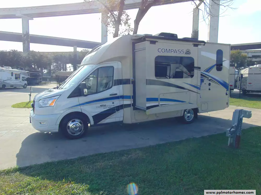 This 2022 Compass Awd 23TE TRANSIT is a compact and versatile motorhome built on the rugged Ford Transit chassis.With all-wheel drive (AWD) and a fuel-efficient EcoBoost engine,this RV is designed for adventurers seeking both on-road comfort and off-road capability.It is easy to drive and park,making it an excellent choice for couples or solo travelers.Amenities Include...3.5l V6 Ford Engine On a Ford Chassis, 1 Slide-out, Onan Gas Generator, 1 Ducted Air Conditioner, Single Door Gas/110v Norcold Refrigerator,Murphy Queen Bed,New Tires,On Demand Water Heater,Televator TV,Solar Panel,Automatic Main Awning And Slide Awning,Backup Camera,GPS System,Heated Tanks,TV,Satellite Radio, Outside Shower,Convection Microwave,and 2 Burner Range.It's a reliable motorhome for travelers looking to explore both highways and rugged terrain in style and comfort.