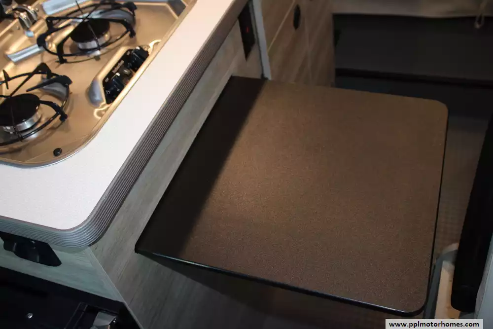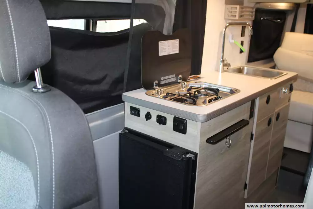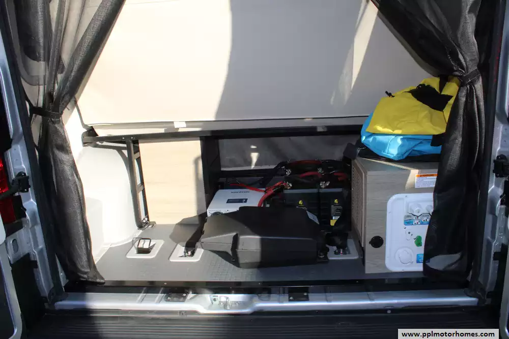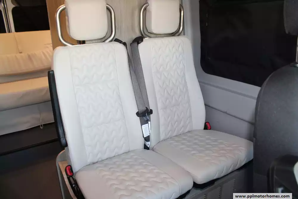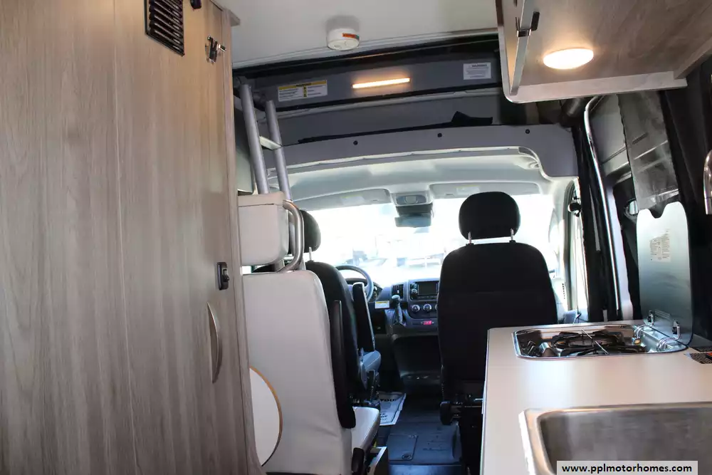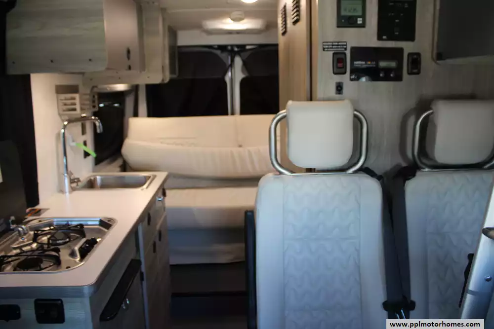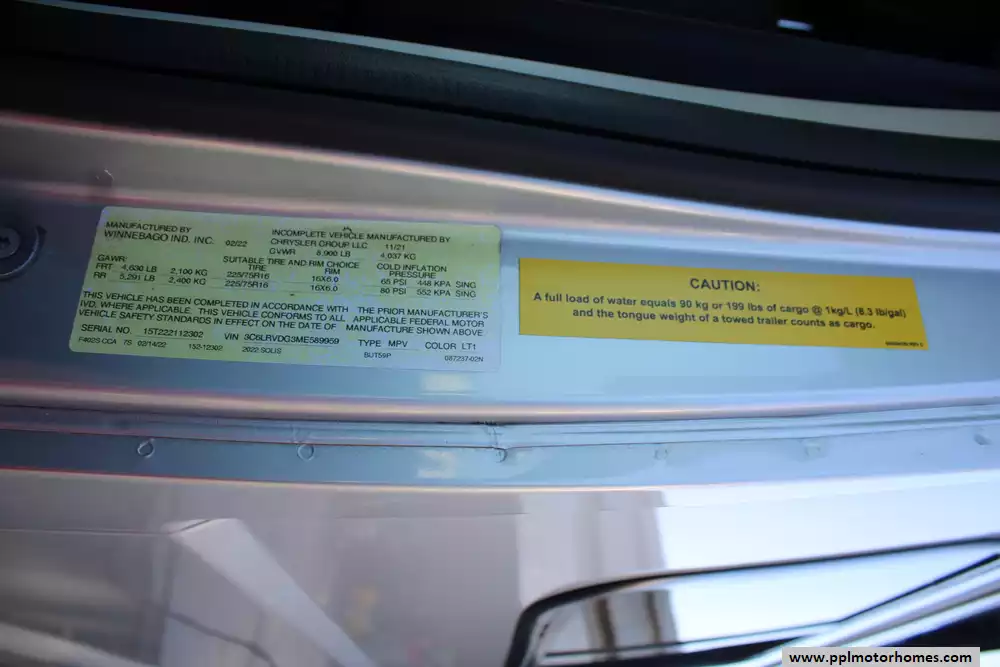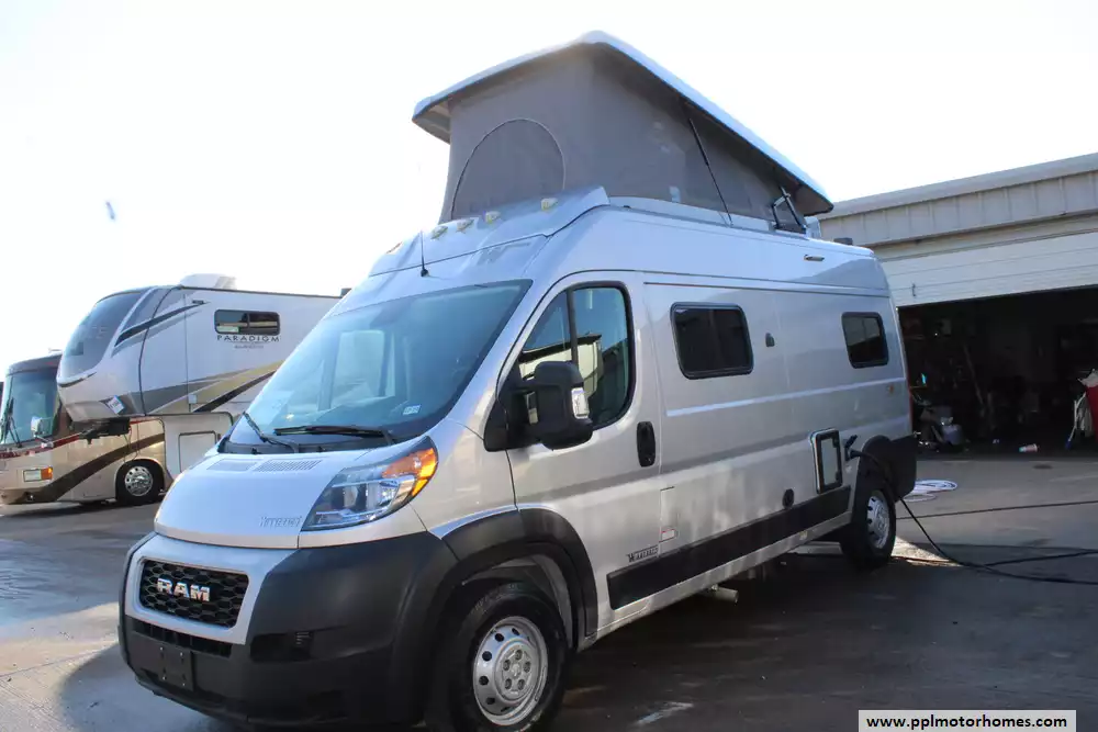 The 2022 Winnebago Solis 59P is a compact and versatile Class B motorhome built on a Ram ProMaster 2500 chassis, packing a 280 hp 3.6 L V6 engine and 6-speed automatic transmission. At just 19' 9" in length and 6' 9" wide, it offers nimble maneuverability while still accommodating up to four sleepers with the optional rear sofa (with two 3-point seat belts) instead of the Murphy-plus bed and a pop-top loft sleeping area. Also added was a non-ducted roof air conditioner. Inside, you'll find a smart galley with a 2-burner range, compressor-driven fridge, and stainless sink, a wet bath with cassette toilet, and a lounge/dinette area convertible into additional seating or sleeping space. The Solis 59P also features a solar-ready roof panel (220-watts), a 20-23 gal fresh water tank and 20 gal gray tank, and towing capacity of up to 3,500 lbs, making it well suited for weekend getaways or extended adventures with off-grid potential. With its blend of compact size, flexible living space, and modern amenities, the 2022 Solis 59P strikes a strong balance between van-life freedom and full-featured comfort.