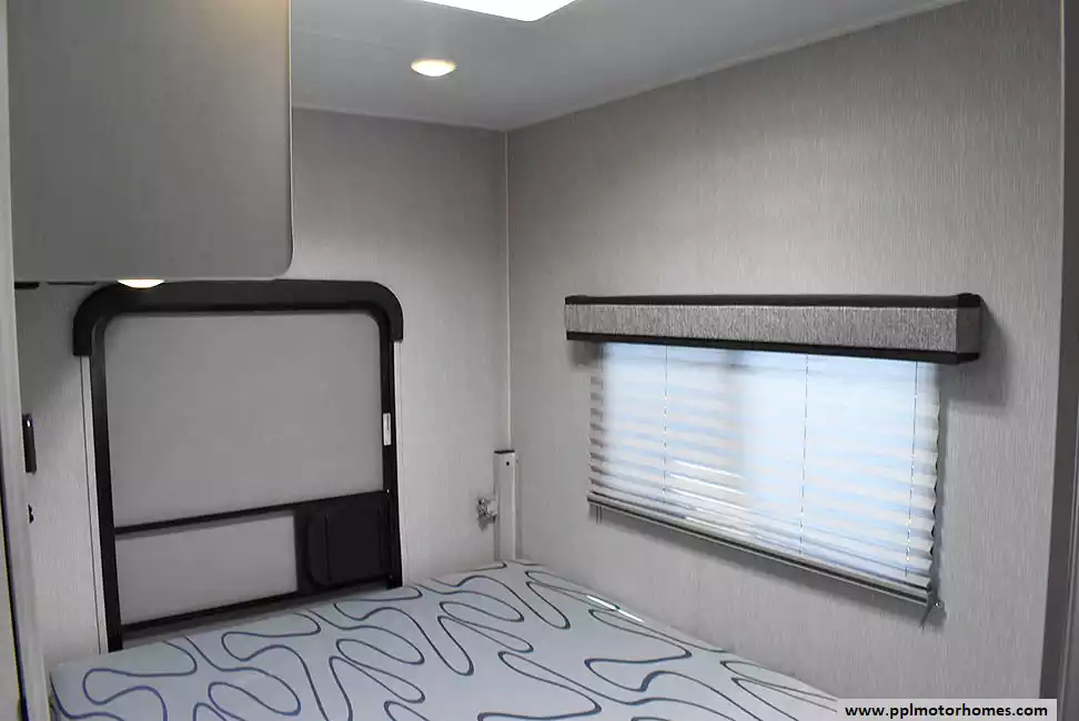 Comfortable cab-over bunk plus Murphy queen bed and convertible dinette, sleeping up to 6