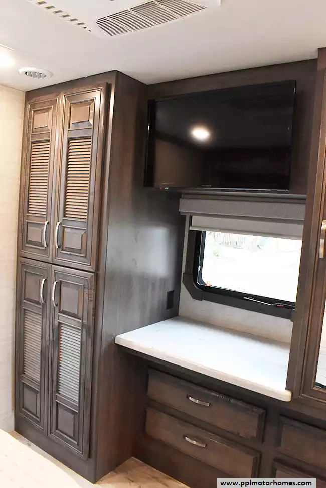 (Floor plan is NOT drawn to scale. Length of vehicle is approximate. Buyer is responsible for verifying actual length. PPL Motor Homes compiled this list of features, specifications, equipment and options as a guide. No representation or warranties, either express or implied, are made as to the accuracy of the information herein. Please verify for yourself all items listed before purchase.)