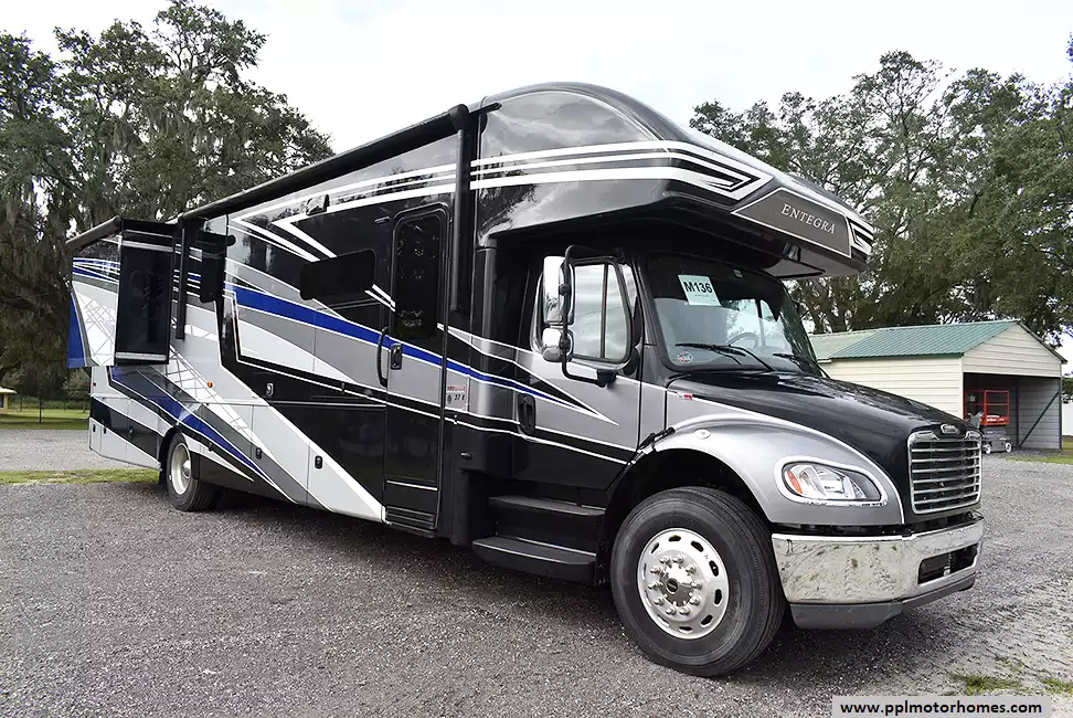 Experience luxury and power with this 2023 Entegra Accolade 37K, a Super C motorhome that blends residential comfort with heavy-duty performance. Built on a Freightliner chassis with rear air suspension and E-Z Drive Premier handling, it delivers a smooth ride and confident control.Inside, you'll find a spacious bath-and-a-half layout, perfect for traveling families or entertaining guests. The modern kitchen features an induction cooktop, solid-surface countertops, and premium cabinetry. Enjoy residential conveniences like a washer and dryer, king bed suite, and ample storage throughout.With low mileage, top-tier finishes, and the comfort of air suspension, this coach is ready for the road. Whether you're planning extended adventures or weekend getaways, the Accolade 37K offers everything you need for first-class travel.