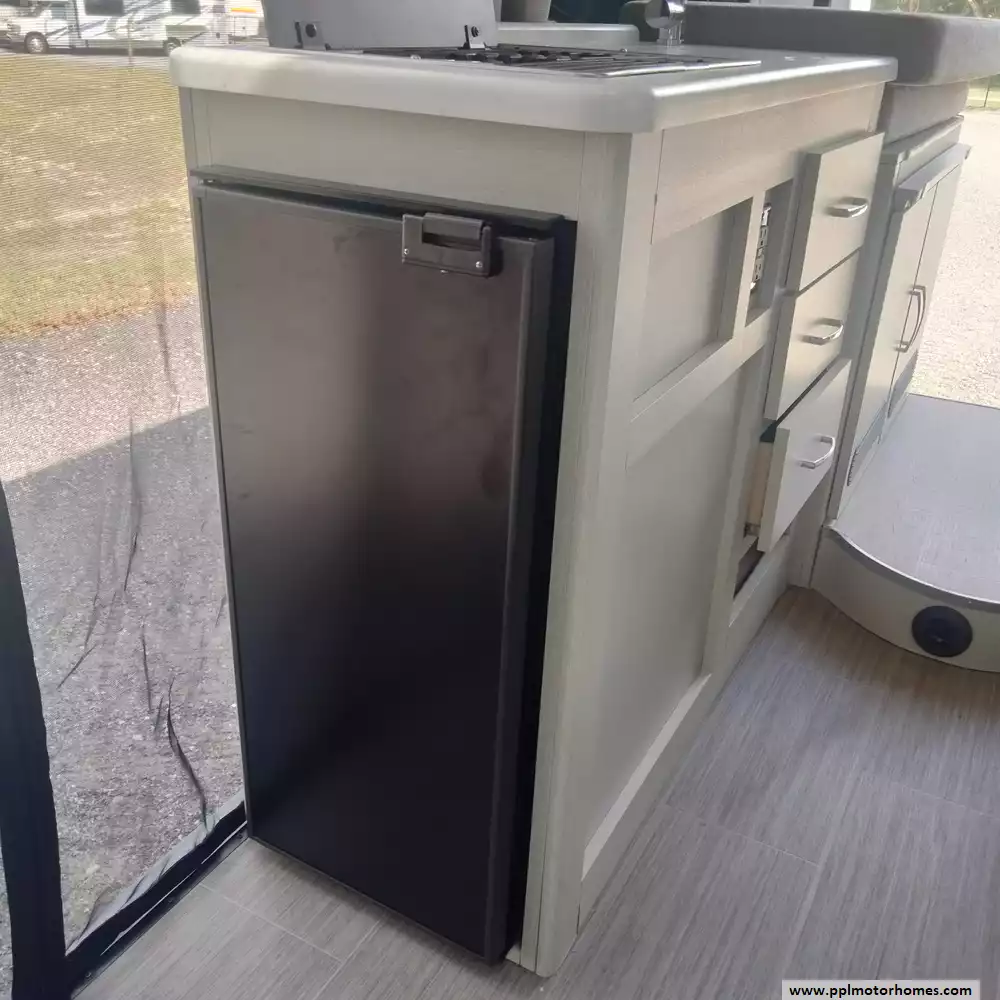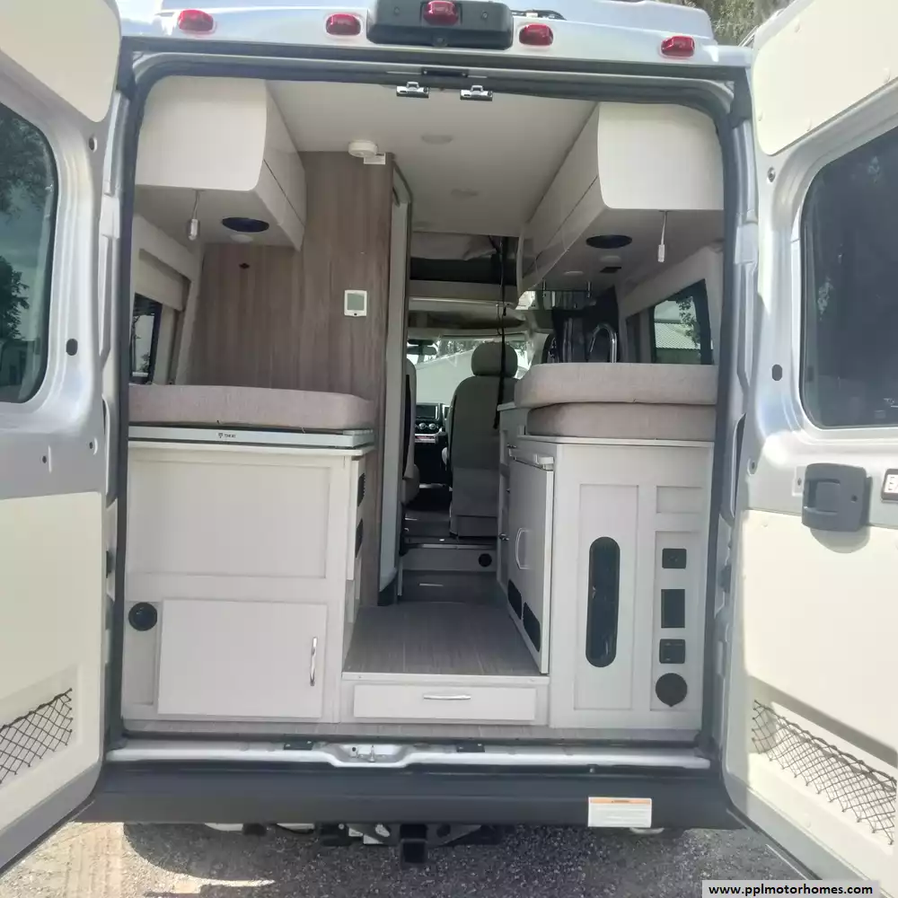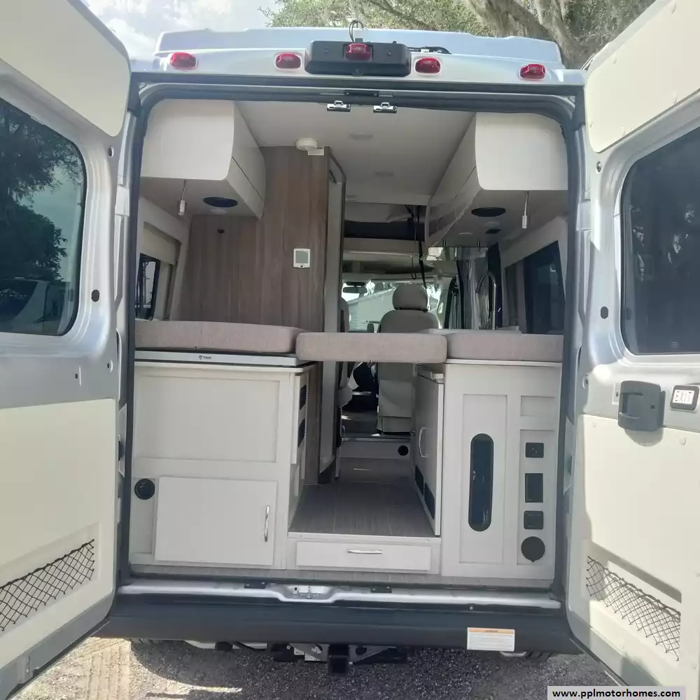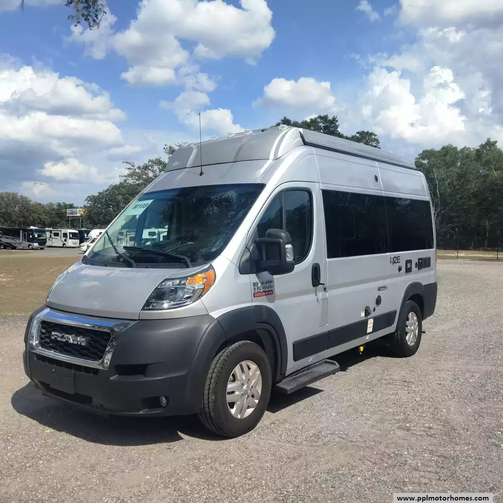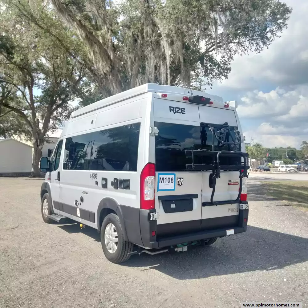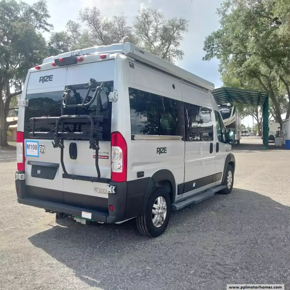 This 2023 Rize 18M has a V6 Dodge Engine On a Promaster Chassis, Onan Gas Generator, Single Door 110v Refrigerator, Automatic Main Awning And Door Awning, Backup Camera, Solar Panel, Microwave, 2 Burner Range